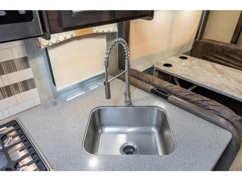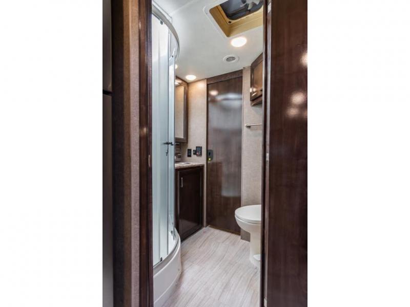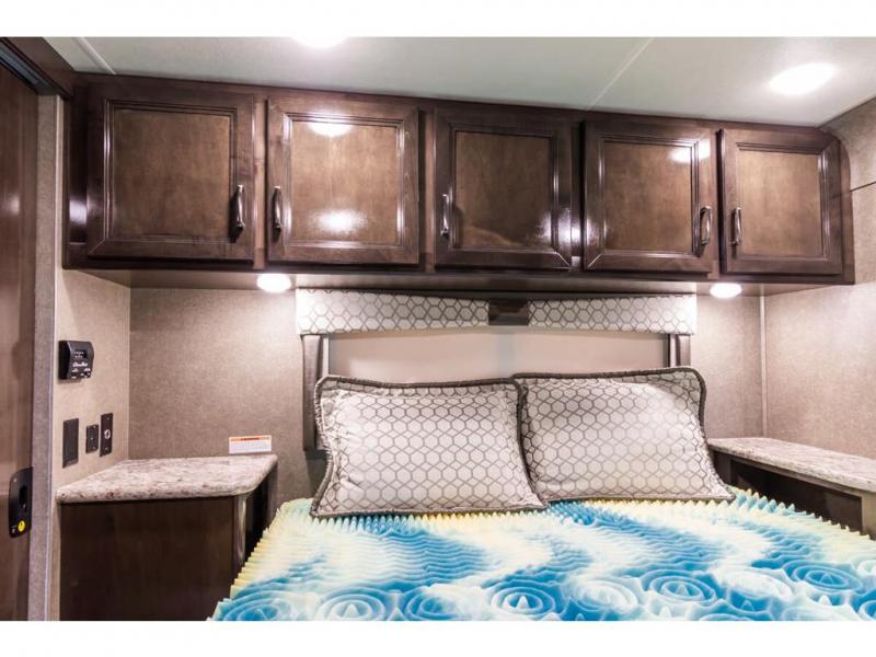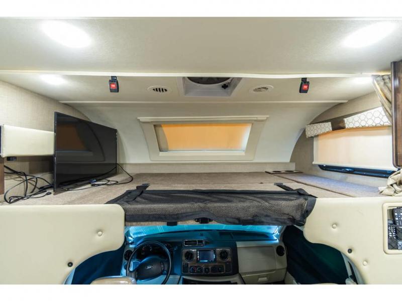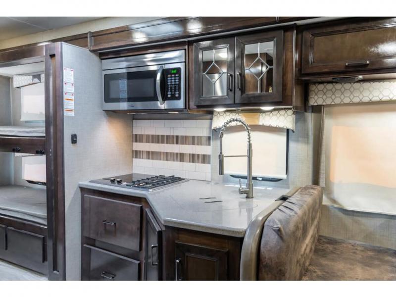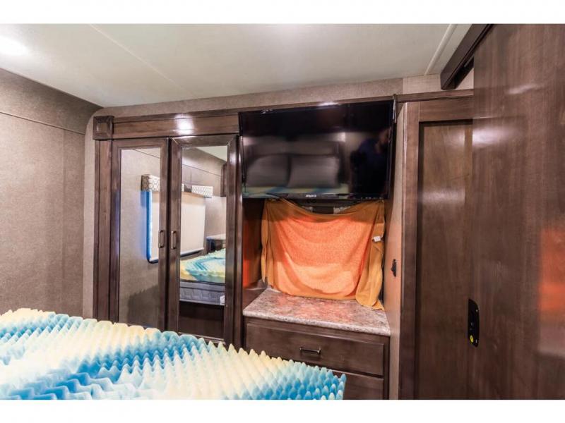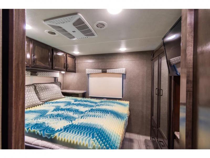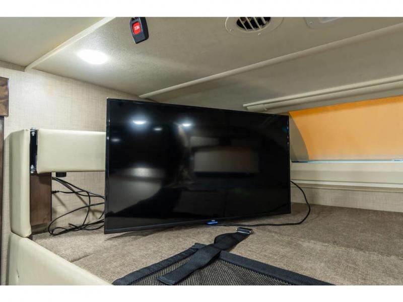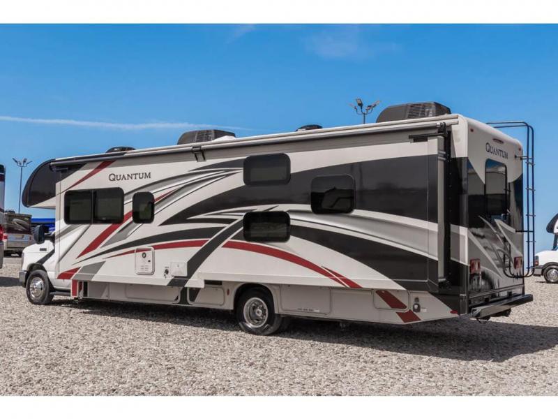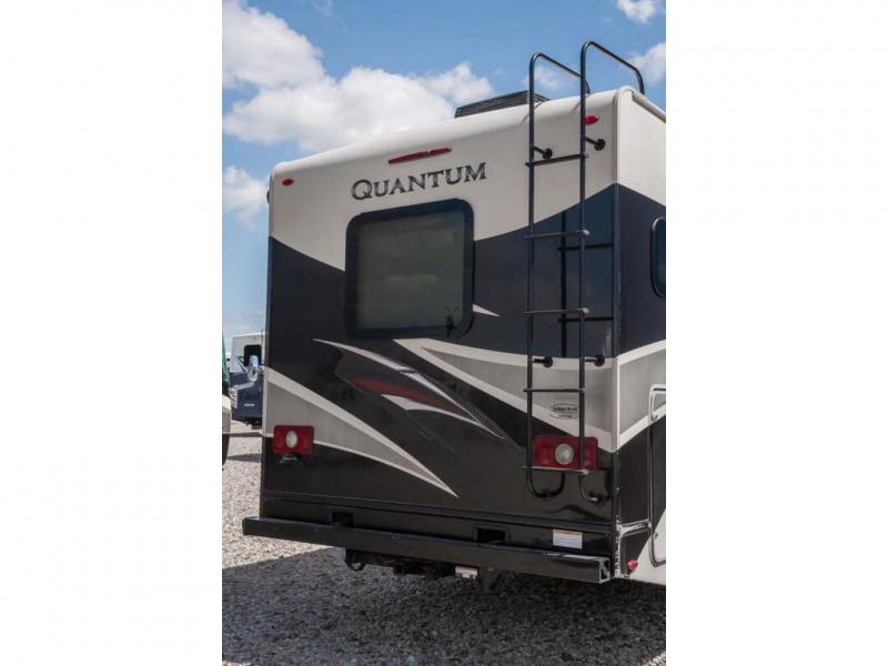 Step inside this Quantum Class C gas motorhome and see just how luxurious of a trip you will have! From the pull-out pantry for storing your favorite snacks and the RV queen bed for a good night's rest to the 40" TV with a swivel and the built-in skylight over the 54" x 96" bunk above the cab, you will be impressed. If you don't feel like watching TV indoors, then head outside and enjoy watching the big game on the exterior 32" TV while you stay protected from the sun with the 16' electric awning with LED lights. The dual-entry bath makes it easy for anyone to access, especially those who get the pleasure of staying in the rear master suite!