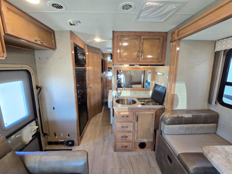 It's time for you to experience traveling in luxury with this Thor Motor Coach Quantum Sprinter Class C diesel motorhome! It features a booth dinette for you to enjoy your meals at and theater seating for you to comfortably watch your favorite movie on the 40" TV. You are sure to love the convenience of the full bath which has a spacious 24" x 32" shower. There is a privacy curtain for you to create a rear private bedroom with a full-size 54" x 74" bed, and cooking will be a breeze in this kitchen, especially when you utilize the flip-up countertop!