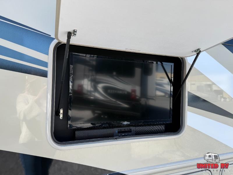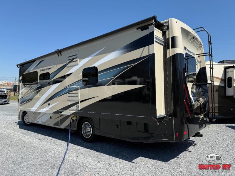 Have you been daydreaming about traveling the countryside with your spouse? Are you looking for additional sleeping space on occasion? This Windsport Class A gas motorhome will have you sitting by your number-one person in comfort and style. This unit features captain's chairs and a coffee table to enjoy your morning cup of joe, a 68" sofa bed for overnight guests, and a Dream Dinette all together providing enough seating for eight people to visit with one another. The RV king bed in the rear bedroom allows you to sleep in comfort anywhere you decide to stay. The chef will appreciate all the kitchen amenities inside when making meals and outside when making dinner using the exterior kitchen. This unit also includes an exterior 32" TV, and if you prefer to watch television when inside, you will find a 40" and 32" TV.