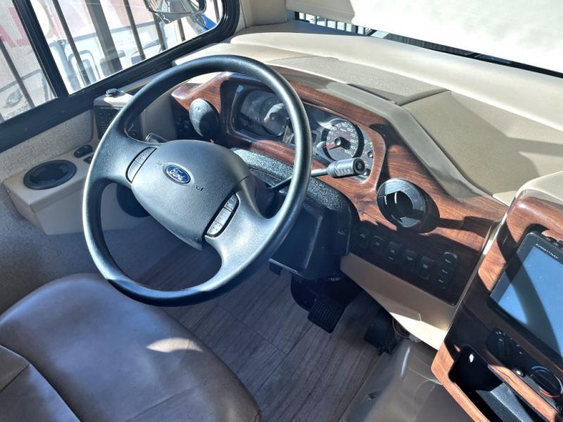 You will find there is much to love about the Thor Motor Coach Windsport Class A gas motorhomes, whether you are out for a long road trip across the country or a weekend reunion with family. All Windsport models feature Leatherette furniture, solid surface kitchen countertops, and raised panel upper cabinet doors with nickel finish hardware and glass inserts on select doors. With the swivel and reclining captain's chairs featured in these coaches, you can easily bring them into the conversation area in the living space once parked. Each unit includes a dash workstation with 110-volt and 12-volt outlets at the passenger side for those who need to take work with them on the road or for those who just enjoy surfing the internet. On the outside, enjoy Rotocast storage compartments, an outdoor shower, and a legless lateral power awning with integrated LED lighting.