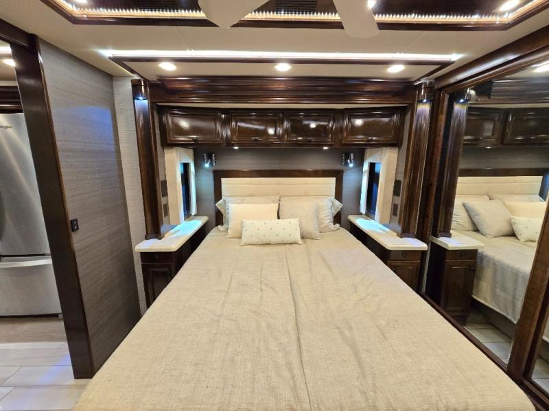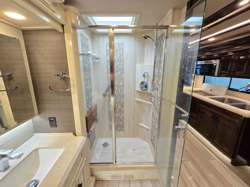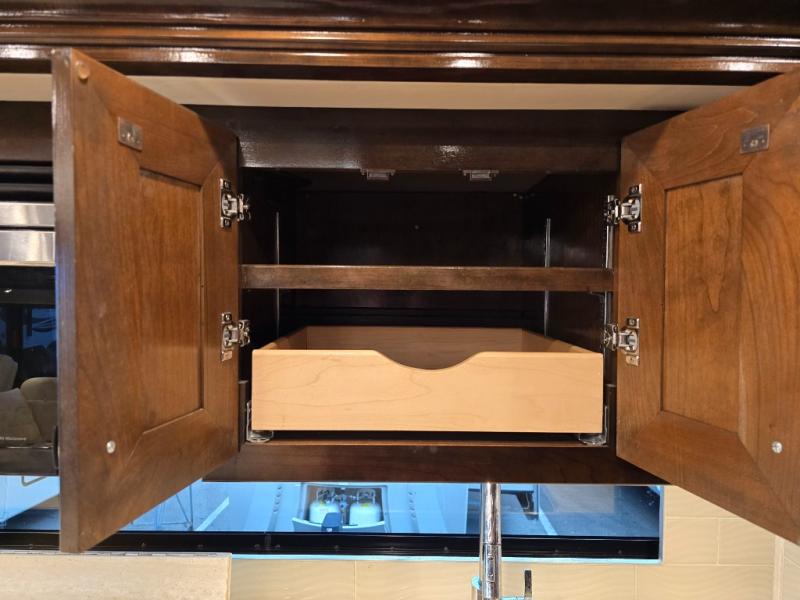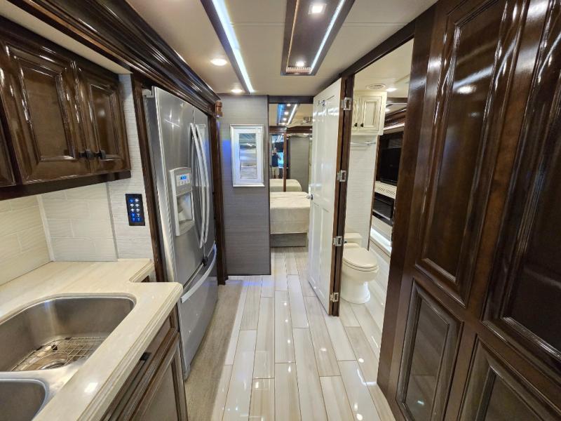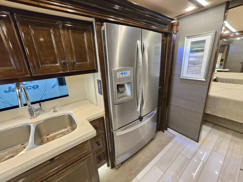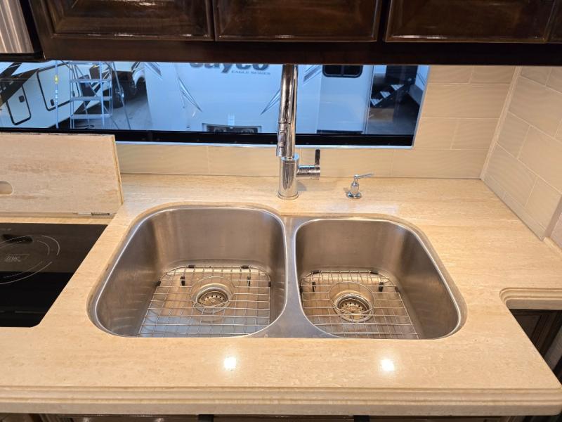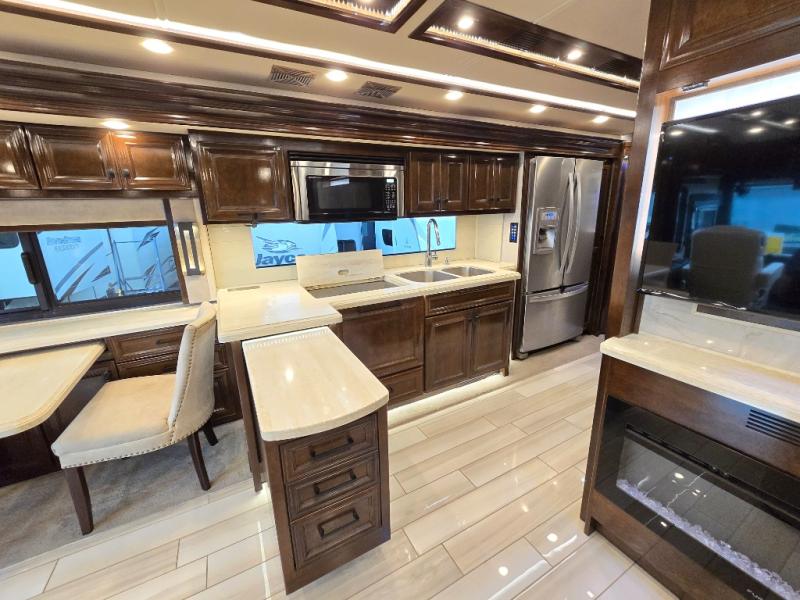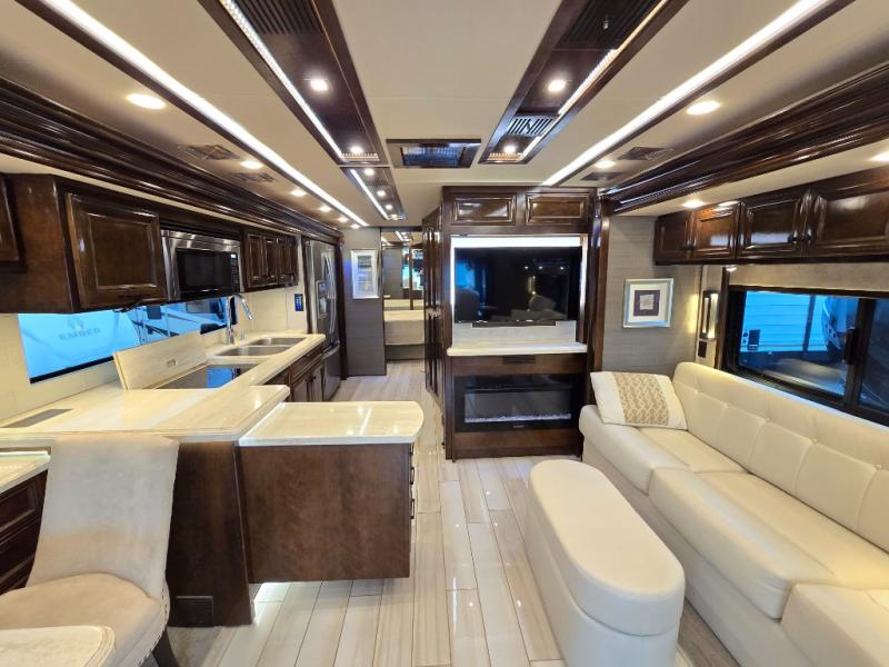 Step inside this Allegro Bus Class A diesel motorhome for complete comfort and luxury. The four slides in this model open up every space, and the sofa bed with an ottoman allows you to kick up your feet after driving all day. The dinette with a computer workstation will be a perfect place to get some work done while away from home, and if you need a quick nap, the king bed in the rear master suite provides a comfortable place to rest your head. Clean up in the dual-entry bath that features a dual-sink vanity for convenience, and then head to the kitchen to whip up some dinner. The expand-an-island will provide more counter space, and the two-burner induction cooktop and stainless steel convection microwave can cook up any meal you have planned.