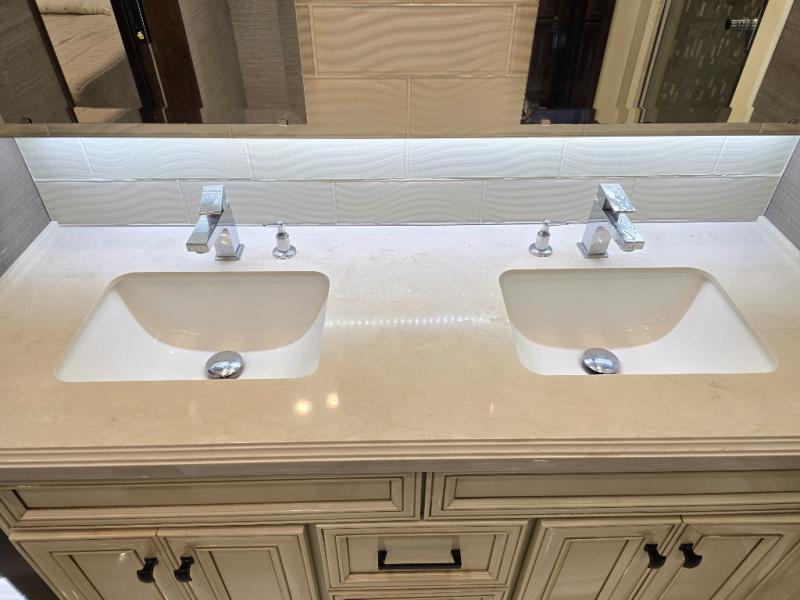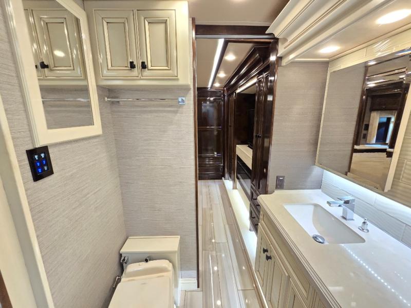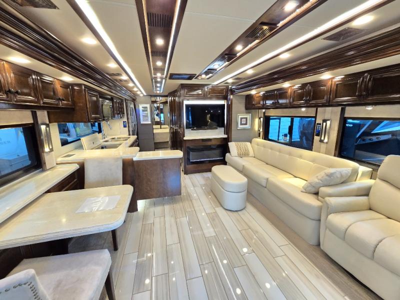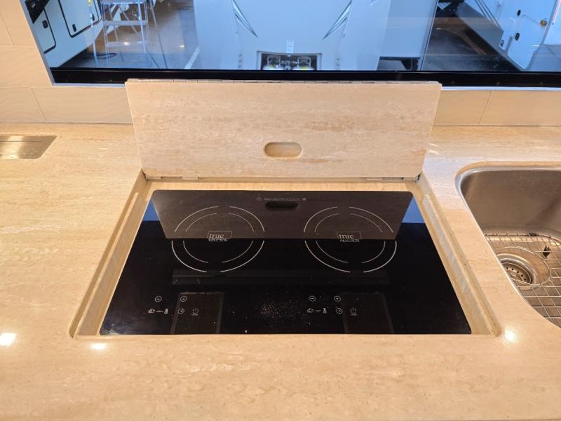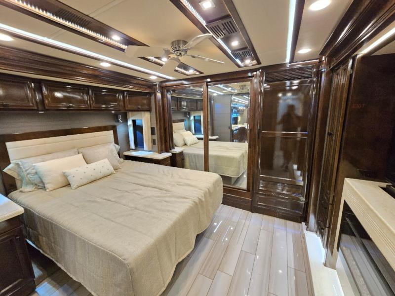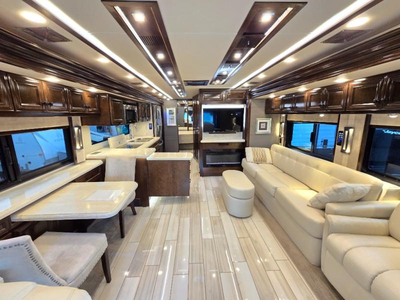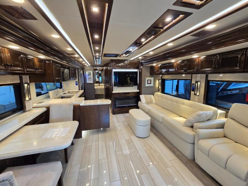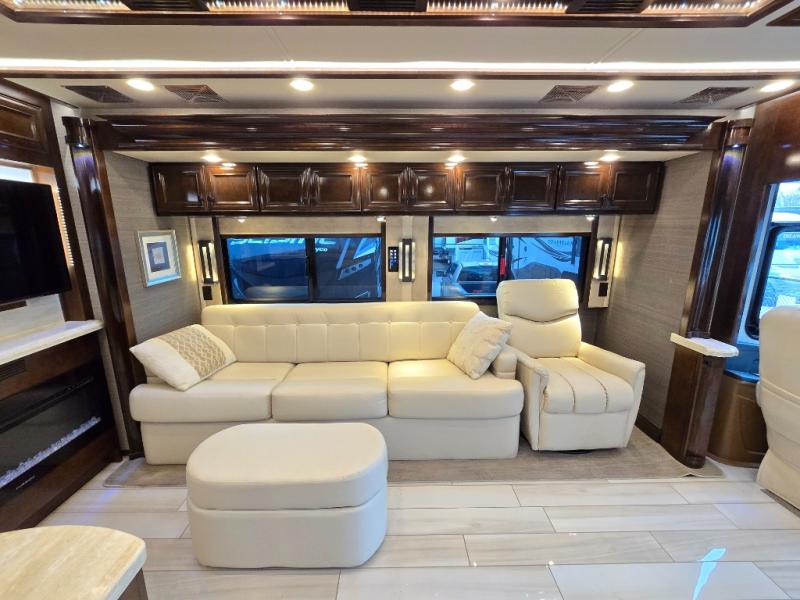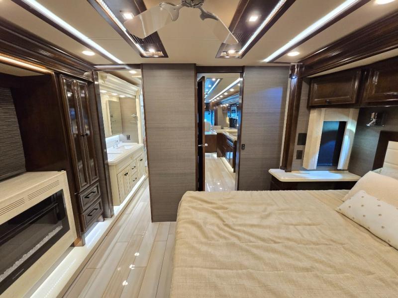 Step inside this Allegro Bus Class A diesel motorhome for complete comfort and luxury. The four slides in this model open up every space, and the sofa bed with an ottoman allows you to kick up your feet after driving all day. The dinette with a computer workstation will be a perfect place to get some work done while away from home, and if you need a quick nap, the king bed in the rear master suite provides a comfortable place to rest your head. Clean up in the dual-entry bath that features a dual-sink vanity for convenience, and then head to the kitchen to whip up some dinner. The expand-an-island will provide more counter space, and the two-burner induction cooktop and stainless steel convection microwave can cook up any meal you have planned.