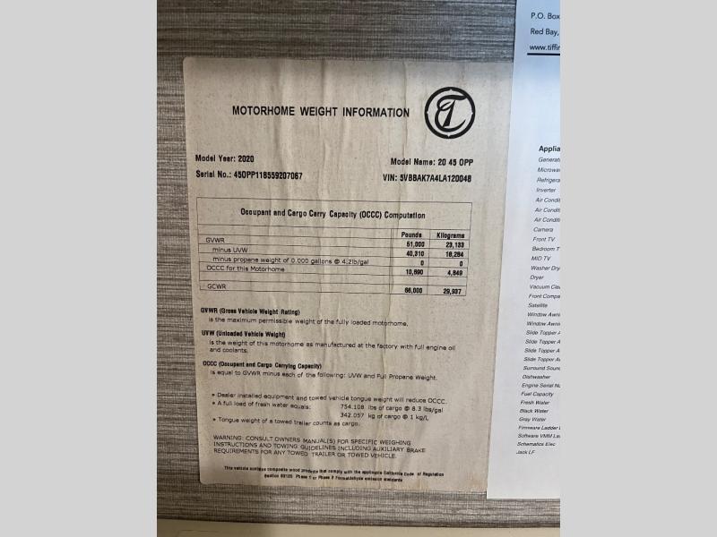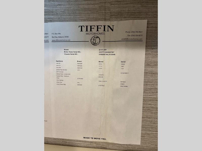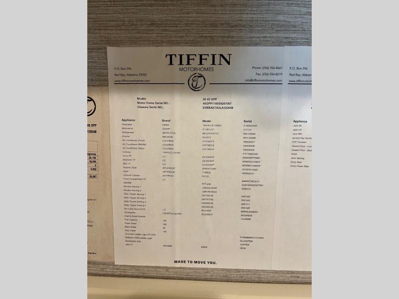 Used 2020 Tiffin Motorhomes Allegro Bus 45 OPP Motor Home Class A - Diesel
