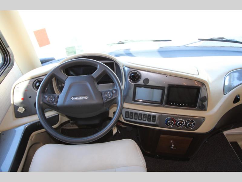 Each Allegro RED Class A coach is built on a Freightliner rear engine diesel chassis providing a pleasurable driving experience, and the eight-step full-body paint system offers three layers of superclear coat and ultraviolet protection, and an additional layer of scratch-resistant plastic coating protects the front of the coach, the stairwell, and the entry door lock. The form-fitted seamless roof cap, the high-performance thermal insulation in the sidewall and floor, plus the fiberglass front and rear caps offer extra protection for years of ownership. The interior will impress with the decor choices, the high gloss flat panel hardwood cabinet doors, the ceramic tile flooring in the living area and bath, and all the Ultraleather furniture. You will always experience maximum space, optimal organization, relaxation, and elegant atmosphere in each model. Choose your favorite today!