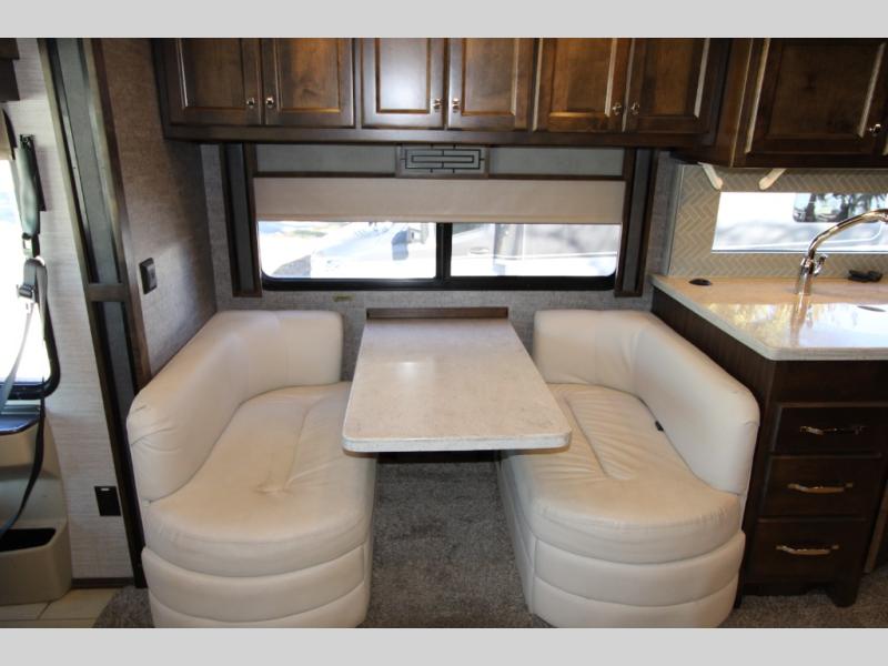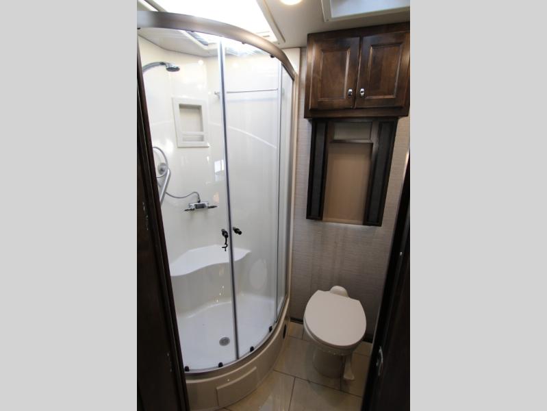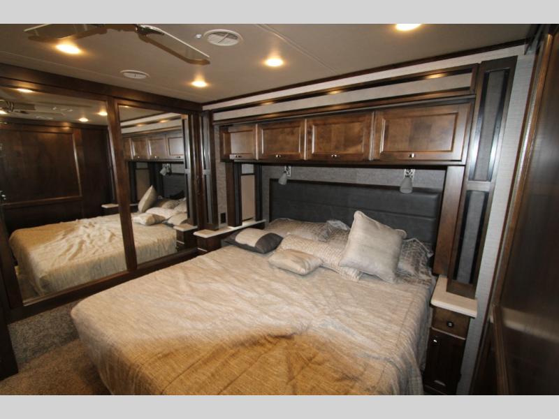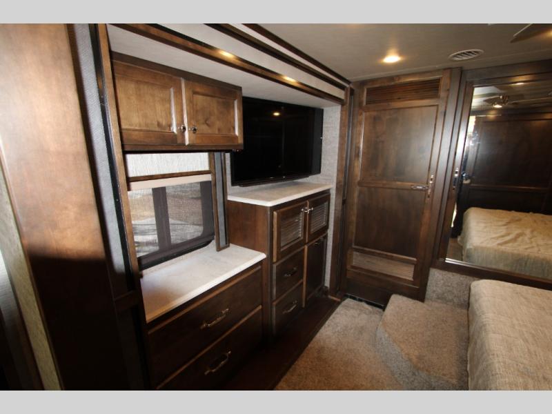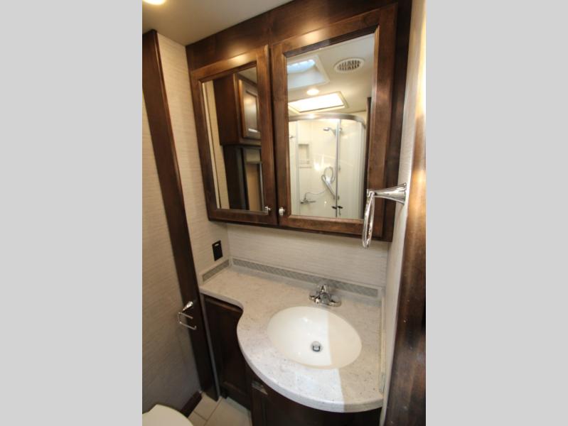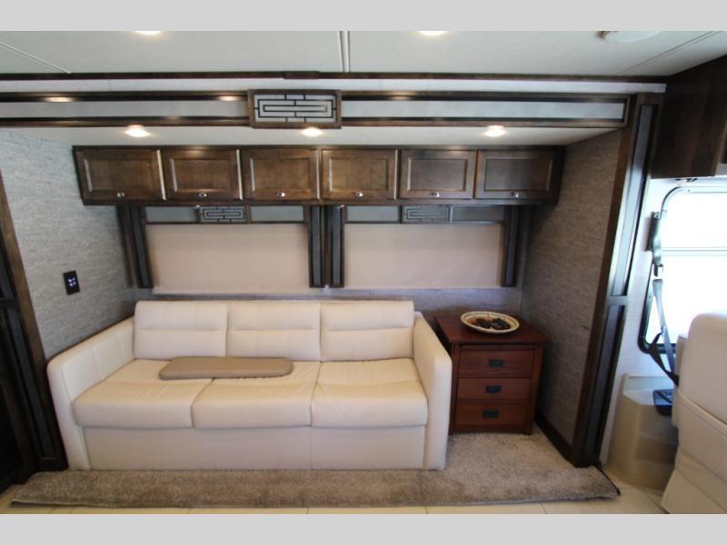 Would you rather be relaxing on a sofa bed, the passenger seat with footrests, or a recliner when you are deciding if you want to shop in town or wait for your favorite TV show to come on? The choice is yours every day in this spacious interior with four slide outs throughout to easily move from one end of the coach to the other. The main area includes a TV in the front and a TV near the sofa allowing two people to watch what they want, plus there is a bedroom TV. You might even like to sit under the awning and watch the exterior TV when you prefer to get a little fresh air and visit with your RV friends. There are even options to choose from such as a residential refrigerator with the all-electric option, a U-shaped dinette, a dinette with computer workstation, and/or an L-shaped chaise sofa. And the full bathroom and rear bedroom offer an oasis from it all.
