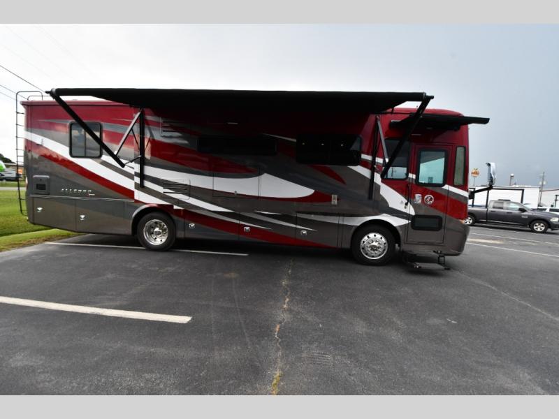 Envision you are traveling the countryside with your family. You know the final destination will be fabulous, so why shouldn't your living arrangements be comfortable and luxurious as well? With this Allegro RED 340 Class A diesel motorhome, they absolutely will be! Now picture two flat panel TVs to watch inside either in the living area or in the rear private bedroom on a king bed, and just think about how fun it will be to have an exterior TV to watch while relaxing under the power patio awning. The large kitchen sink, solid-surface countertops, and the residential appliances allow you to make any meal you desire, and you can store all leftovers in the residential refrigerator. The full bathroom will allow you to get ready to shop in town, hike the trails, or get ready for bed. You even have some options to customize the unit exactly like you want and need, so take a look and start traveling today!