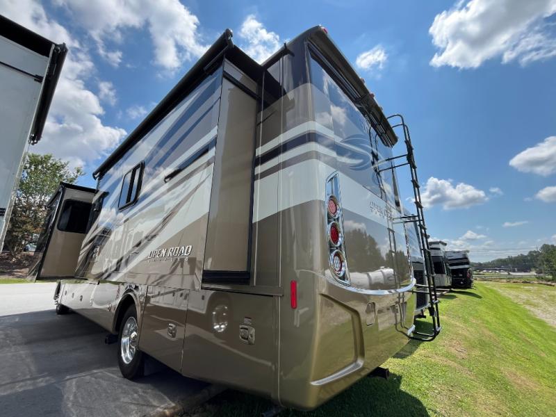 Each Open Road Allegro Class A gas coach by Tiffin Motorhomes offers a one-piece moisture resistant molded fiberglass roof cap providing insulation and strength, a durable and lightweight tubular aluminum wall skeleton, and fiberglass front and rear caps allowing you to enjoy your motorhome for many years to come. The multiplex Spyder Controls system allows you to monitor various tank levels and adjust electrical components of the coach from the comfort of one screen, and the hydraulic automatic leveling jacks make set up a breeze. The kitchen panoramic vista window offers you beautiful scenery, and the high gloss flat panel hardwood cabinet doors, solid wood cabinet fascias, and Ultraleather furniture gives you comfort and style, plus the home theater surround sound system with DVD player is another luxury feature you will enjoy. Start making a lifetime of memories with your own Tiffin Motorhomes Open Road Allegro Class A gas motorhome!