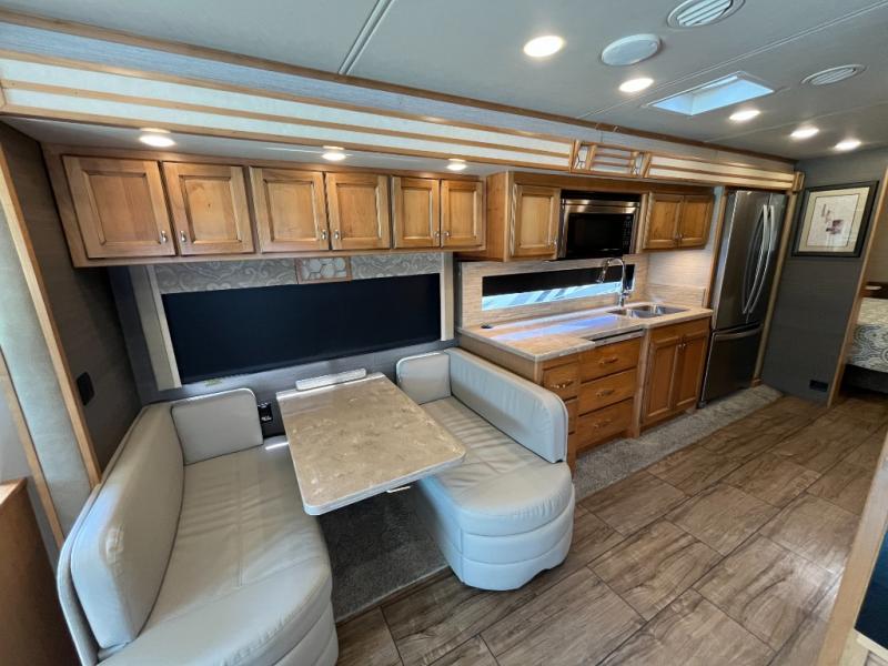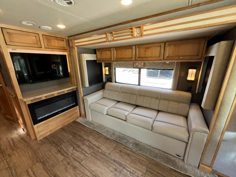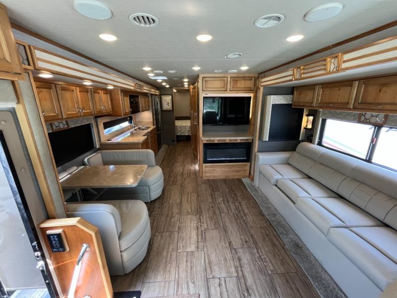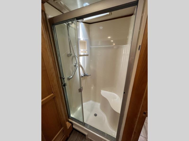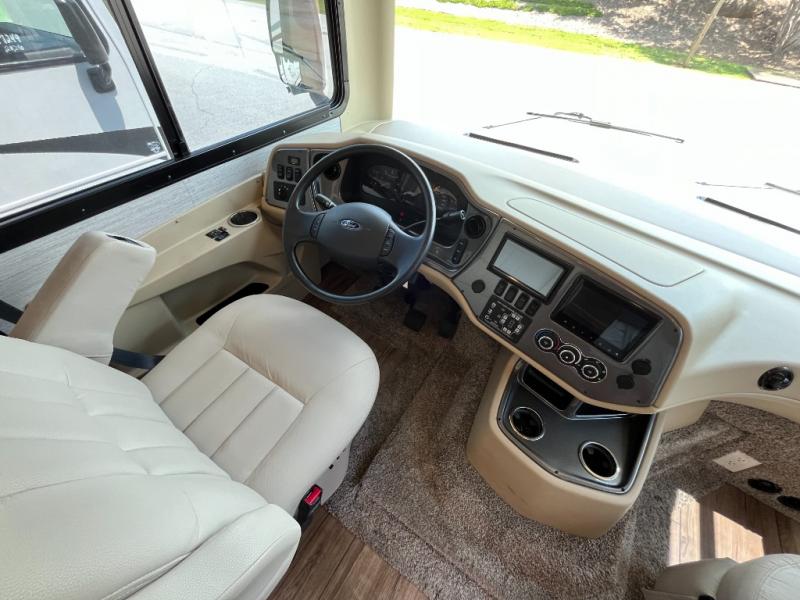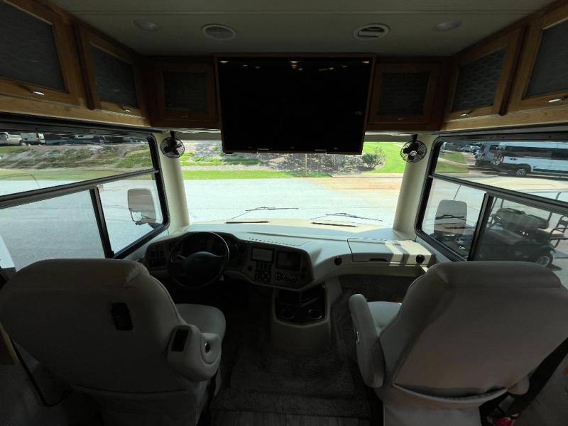 There are plenty of standard features and options to make this motorhome exactly what you want! From the optional drop down bunk over the front Ultraleather power driver and passenger seats and the optional dinette with a computer workstation that can be replaced for the booth dinette to the optional washer and dryer area inside the bathroom. You can even choose to add the optional fireplace below the flat panel TV for even more comfort as you relax on the sofa bed slide out. The rear private bedroom comes standard with a 60" x 80" queen-size memory foam mattress but if you want something bigger then you can switch it out for the optional king-size mattress instead. Yet you might decide the RV is perfect just as it comes!