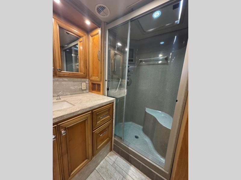 If you are ready to explore the outdoors in style, then you need this Phaeton Class A diesel motorhome! From its ability to sleep seven people to its full and half bath, this unit delivers plenty of space where you need it most thanks to a full-wall slide that has been included in the design, and whenever the day becomes too dreary to stay outdoors, you can cozy up inside to watch a movie on one of the flat panel TVs.