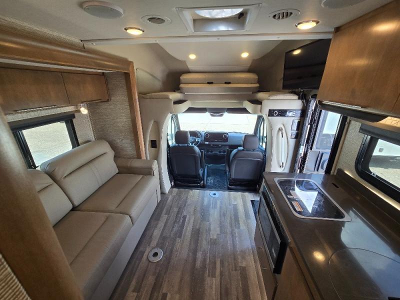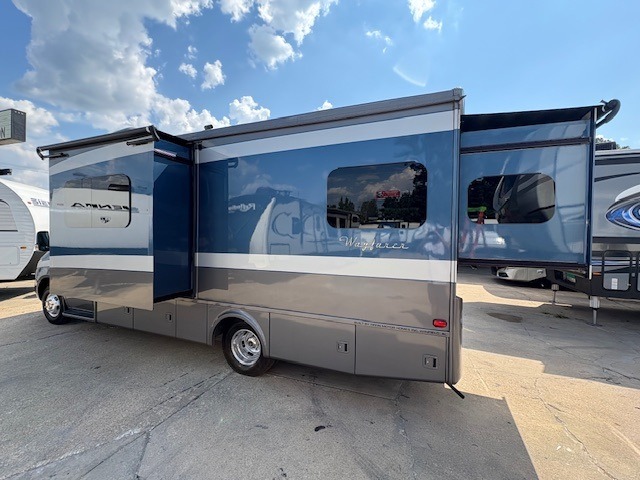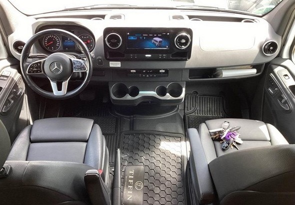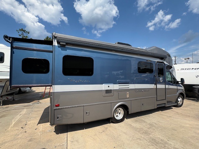 The Wayfarer Class C diesel motorhome from Tiffin Motorhomes offers you more of everything you need along with the luxurious styling and amenities you want! Spacious interiors, industry-standard safety features, and high-performance upgrades embody the heart and soul of every Wayfarer. Starting with a Mercedes Sprinter chassis, a 7G-Tronic automatic transmission, plus a 5,000 lb. hitch capacity, you can plan your trip across the states. The 10.25" MBUX infotainment system with in-dash navigation will make your journey that much easier and you're sure to stay comfortable in the black leather seats. Each model features a soft vinyl ceiling, a designer faucet in the kitchen, LED reading lights and nightstands in the bedroom, plus a porcelain vessel sink with a chrome faucet in the bath that will add luxury to your morning routine. Outside, the 16' Girard power awning with speakers will provide an outdoor living space, the hydraulic leveling system will make setting up a snap, and the eight-step full-body paint system is sure to turn heads wherever you choose to travel!