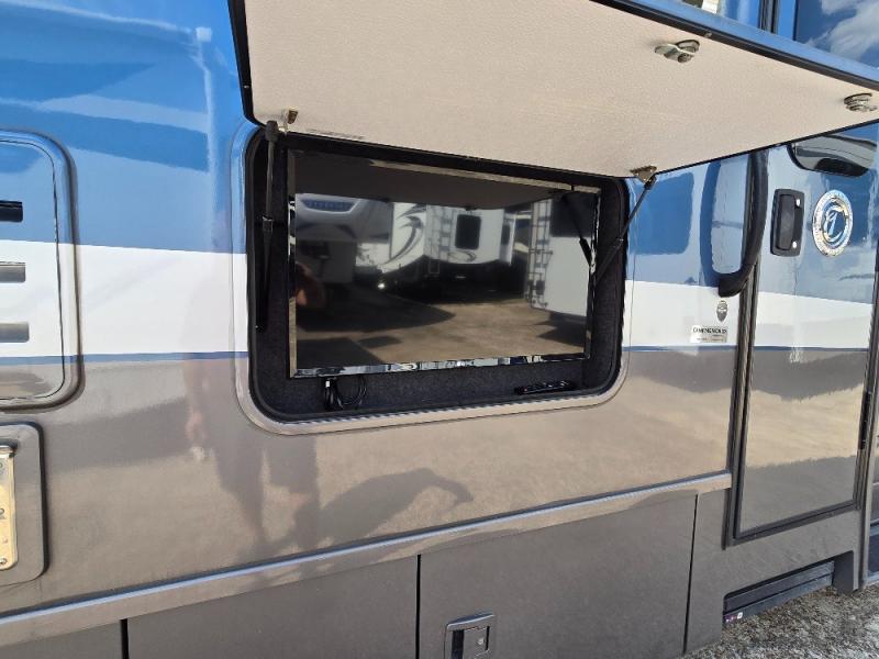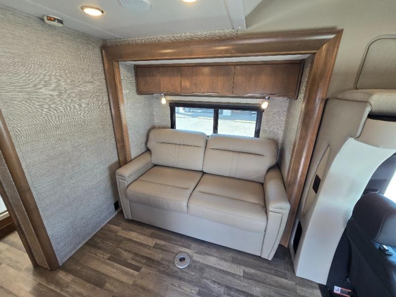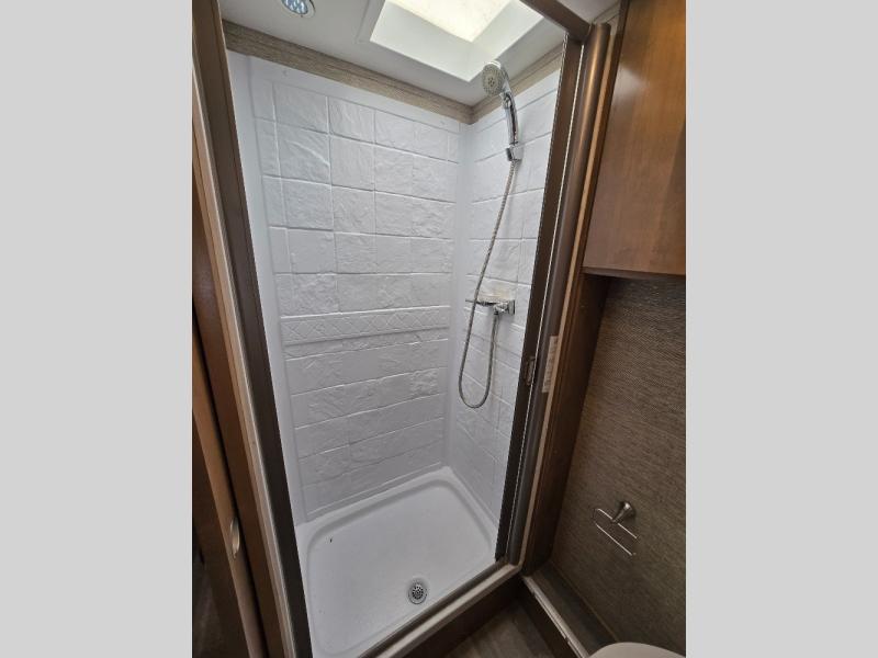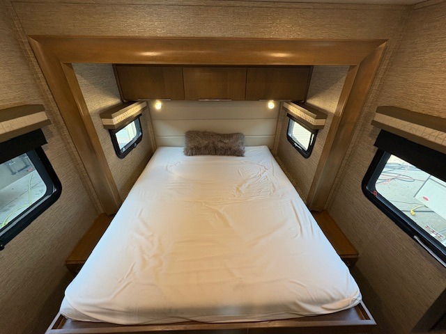 Whether it's the storage drawers below the booth dinette, the pantry slide out in the kitchen, the wardrobe next to the private bedroom, or the under-bed storage, you will find plenty of places to hide your items away in this Wayfarer Class C diesel motorhome! Not only is there storage space, but there is also extra living space because of the two slides that have been included, and the bunk above the cab is a functional use of space because it is out of the way. You can rest up each night on RV queen bed, and the full bath allows you to freshen up to start your day!