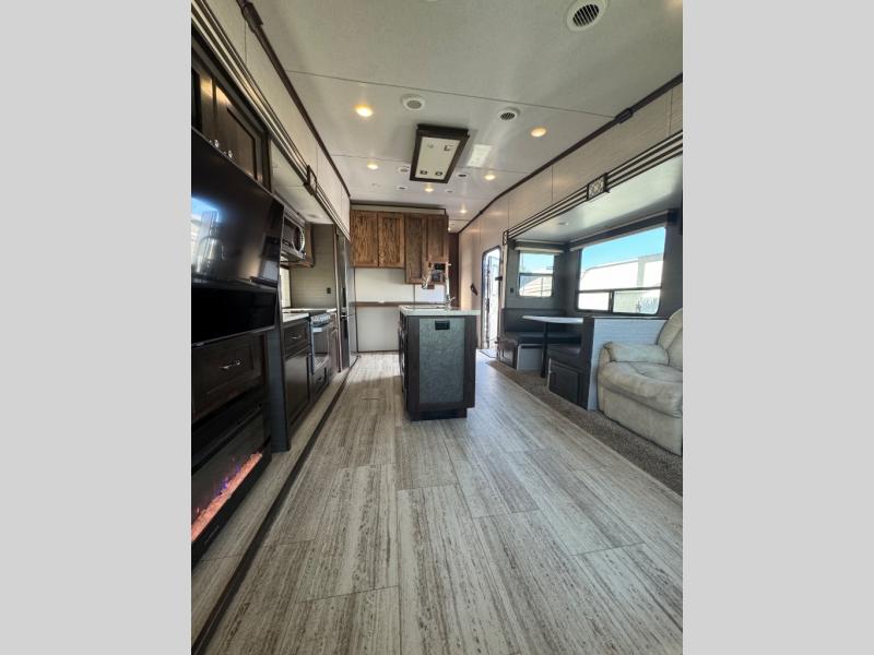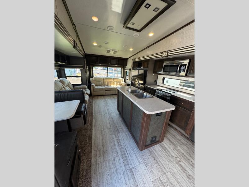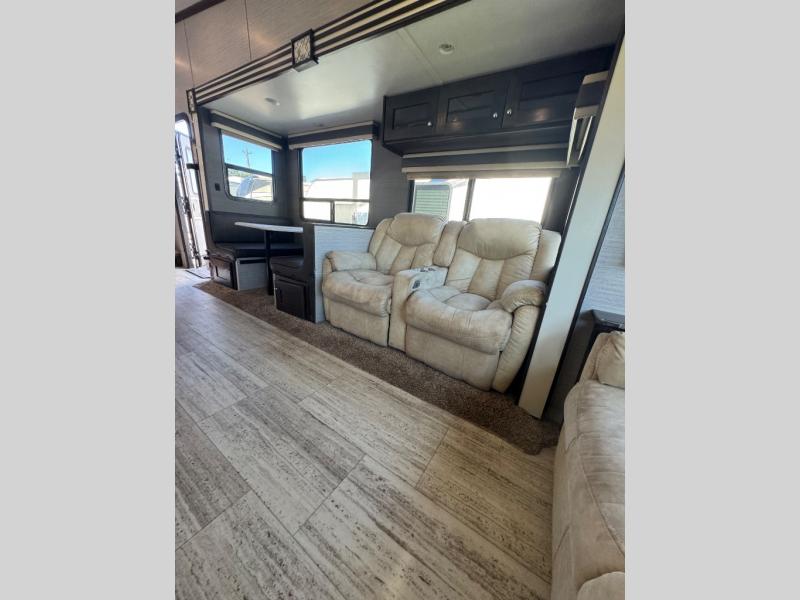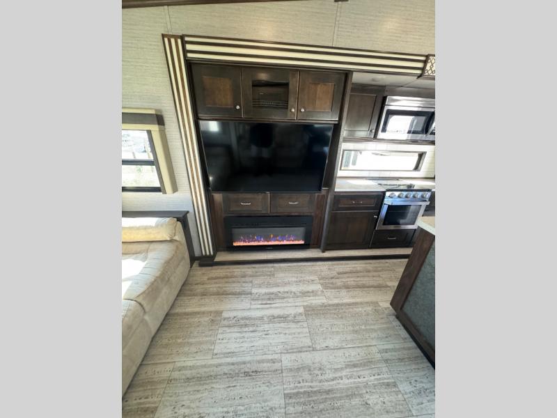 Your friends and family will beg you to take them along with you in this Pinecrest fifth wheel! With the 40" TV, 60" theater sofa, and 80" sofa bed, the rear living area will be such a great place to relax and unwind after a long day of sightseeing, and the Furrion oven and cooktop will help you cook up a quick meal to feed the crowd. After hosting your friends all day long, you will certainly look forward to shutting yourself away in the front master suite for the rest of the night.