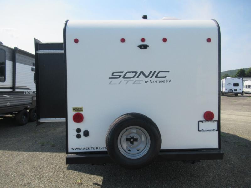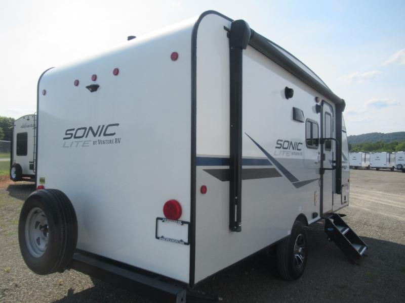 Look no further than one of these Sonic Lite travel trailers by Venture RV! With a one-piece seamless fiberglass roof and a Norco-BAL E-coated and epoxy-painted frame, you will enjoy these trailers for years to come. Plus, the single axles with self-adjusting brakes and EZ-Lube hubs ensure that you will arrive at your destination safely too. The Weather Shield features a radiant foil barrier, forced heat, and an enclosed underbelly so that you can travel anytime of the year. Throughout the inside, you will enjoy all of the convenient features like the StorMore bedside nightstands and the SafeTek box with 110V and USB charging, so come choose the model that best suits you!
