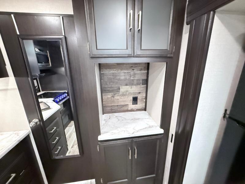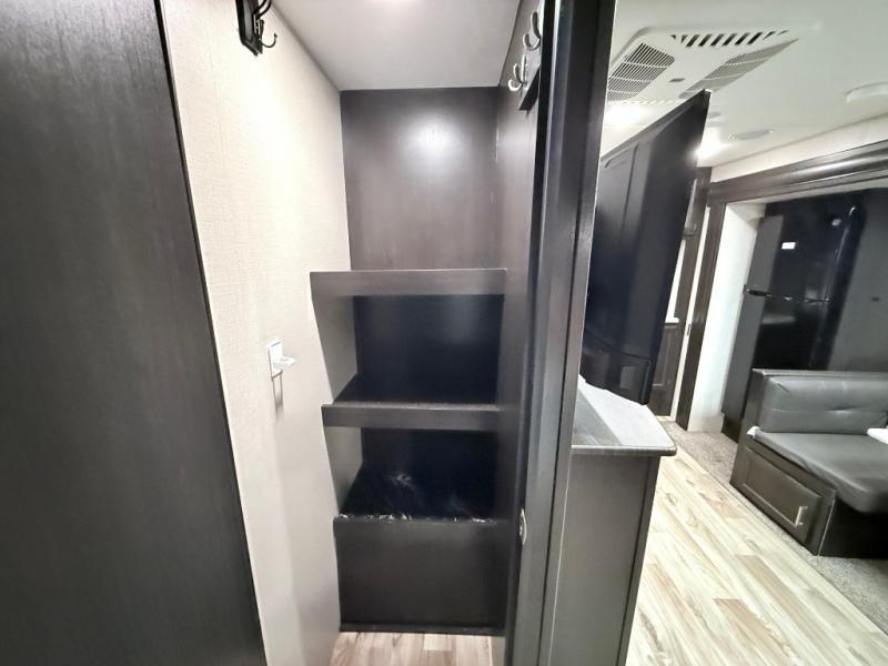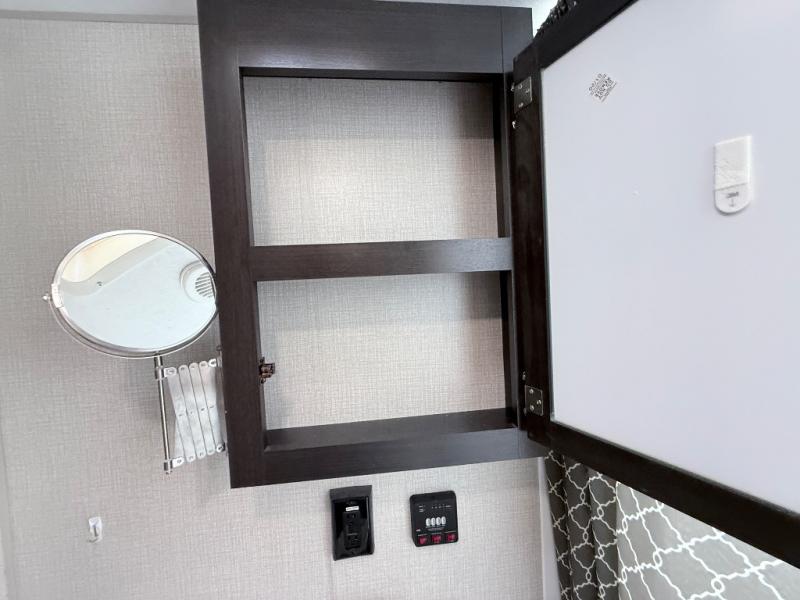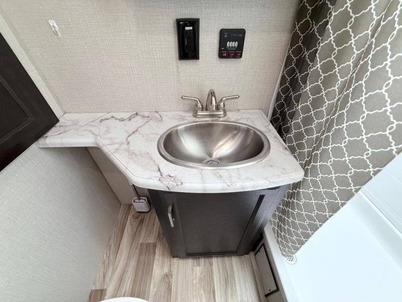 With any SportTrek travel trailer by Venture RV, you will appreciate the NXG huck-bolt frame because it provides a strong and lightweight foundation. Once at your destination, the exclusive-to-Venture RV Level Mate PRO offers leveling simplified, on the first try! Inside you will find plenty of at-home comforts, plus a handy shelf next to the bed with a USB port for charging mobile devices and space to fit most CPAP breathing machines. You will also appreciate the Safe-Tek hidden storage box with a charging center.