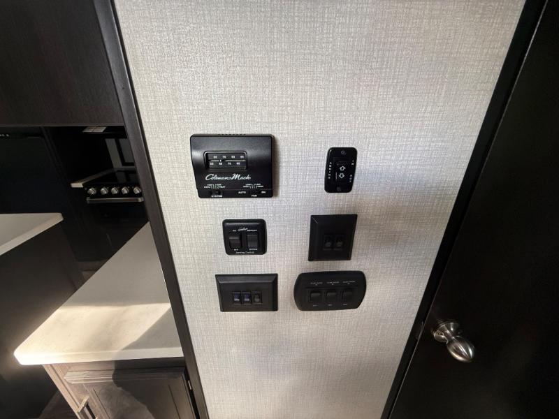 One look at this travel trailer and you can be sure you've just found your new RV! The main living area features dual opposing slides, opening up the whole space for a relaxing feel. You'll find the third slide out in the front bedroom for added space and comfort. The chef of the family will have their choice to cook indoors on the three burner cooktop, or outdoors on the campfire cafe. Your guests will have plenty of seating space on the theater seats or on the tri-fold sofa bed. This model also includes two fireplaces for complete comfort, and a space that has been prepped to add an optional washer and dryer to make wash day easier than ever!