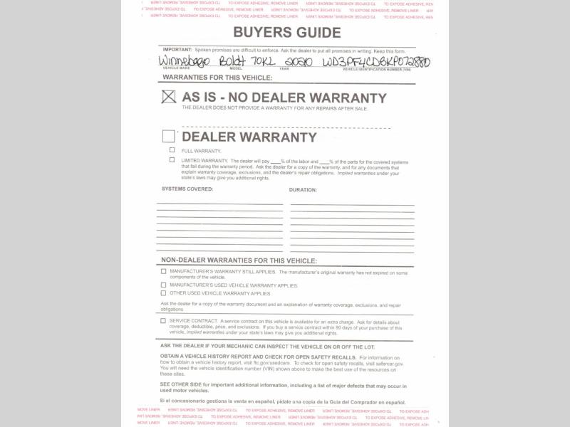 Used 2020 Winnebago Boldt 70 KL Motor Home Class B - Diesel