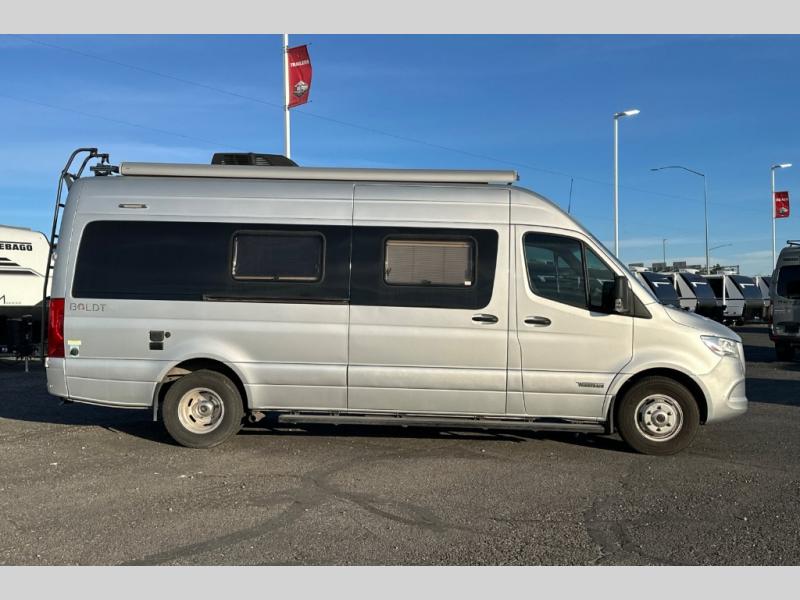 The Boldt Class B diesel motorhome by Winnebago state-of-the-art insulation, in-coach water lines, and Truma Combi Eco Plus heating to keep you comfortable in any season. You will appreciate the advanced safety systems, such as the MBUX infotainment system, the power seats, and the adaptive cruise control. Each model includes USB charging ports for your phone and tablet, vinyl flooring throughout, tinted coach windows, plus a JBL Soundbar and a 24" LED HDTV to keep up on your favorite shows. Outside, the powered sliding door allows an easy entrance, and the screen doors with magnetic closures lets fresh air in and keeps bugs out!