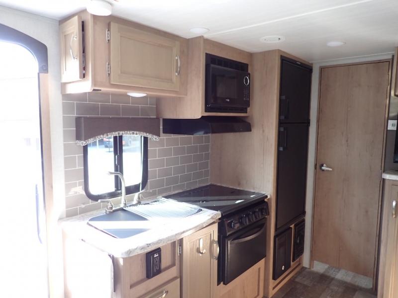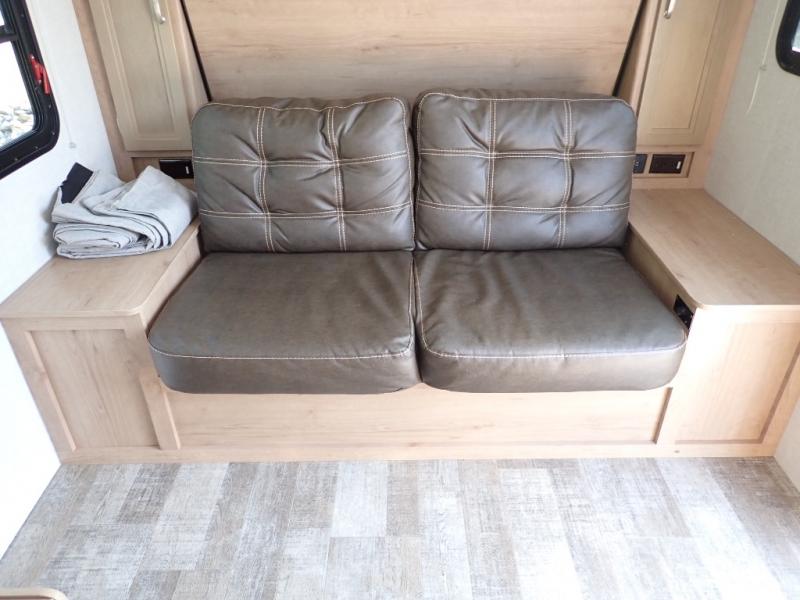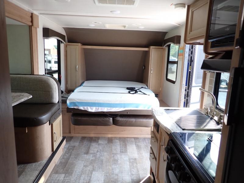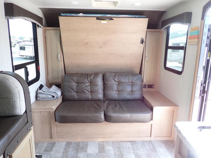 With the flexible Murphy bed and adjustable booth dinette, this Micro Minnie travel trailer gives you a functional living space that works for you and your needs. You will also enjoy the extra room that comes from the single slide, and your family or guests will enjoy the hot meals that you can prepare on the three-burner range.
