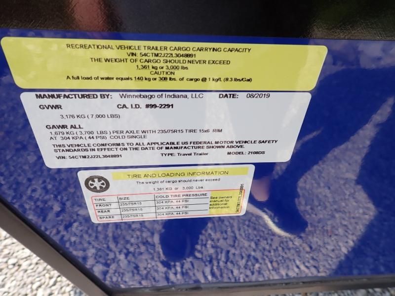 Used 2020 Winnebago Industries Towables Micro Minnie 2108DS Travel Trailer
