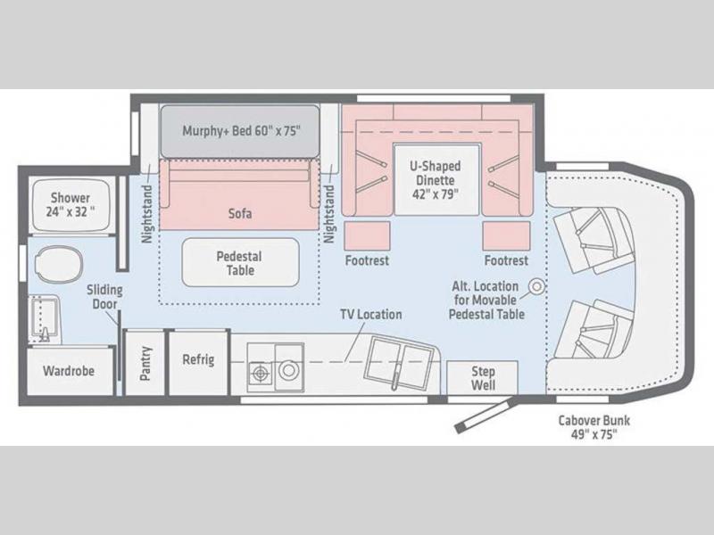 Hit the road knowing that you have all that you need at your fingertips in this Winnebago Navion Class C diesel motorhome. Creating meals and snacks will be easy in the kitchen because of the two-burner induction cooktop and convection microwave oven, and the double-door refrigerator/freezer will keep all of your perishable items cold and fresh. You will also find a pantry cupboard near the refrigerator for all of your dry and canned goods, and the overhead cabinets keep your daily dishes and kitchen items easily accessible. You will thoroughly enjoy the convenience of having a rear bathroom in this coach, and the Murphy bed will prove to be a huge asset in providing extra sleeping space at night while still keeping the interior free from clutter during the day.