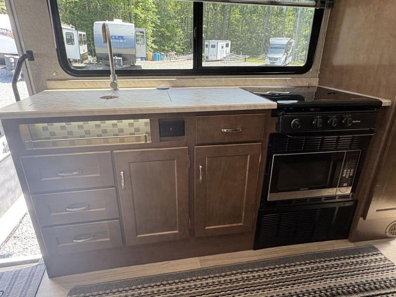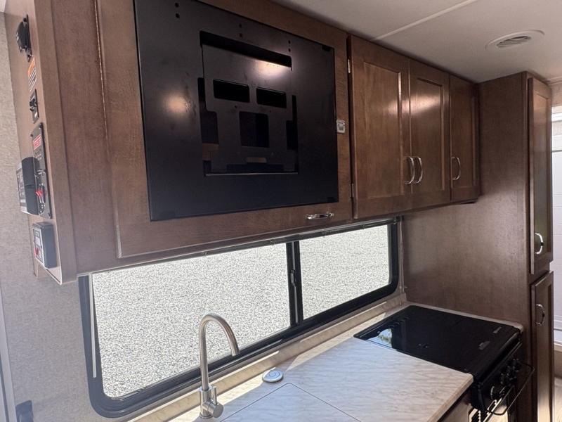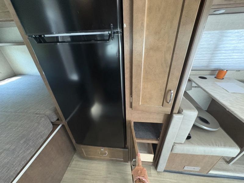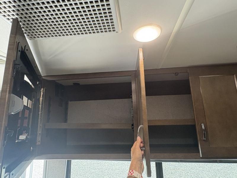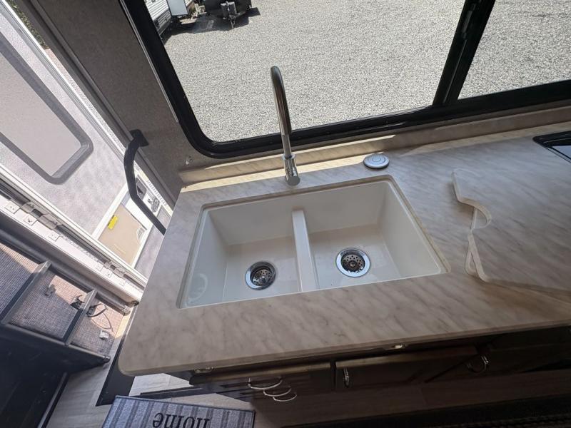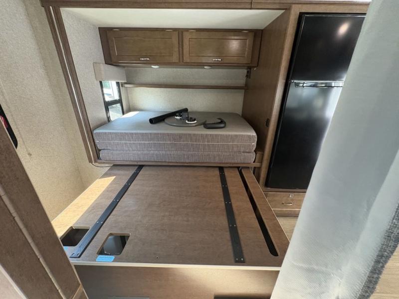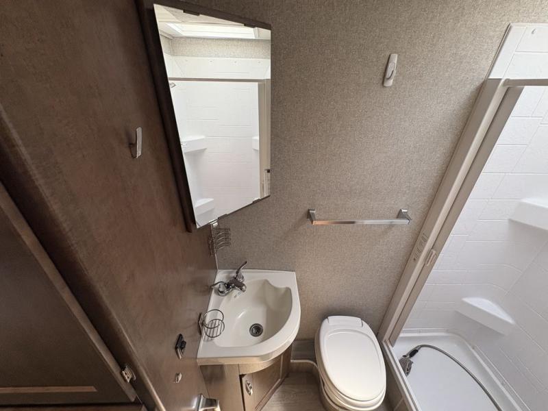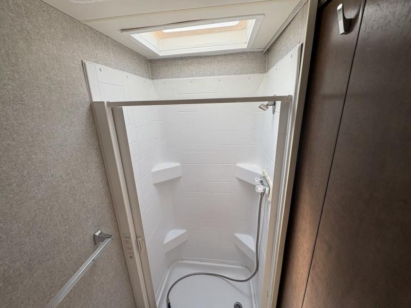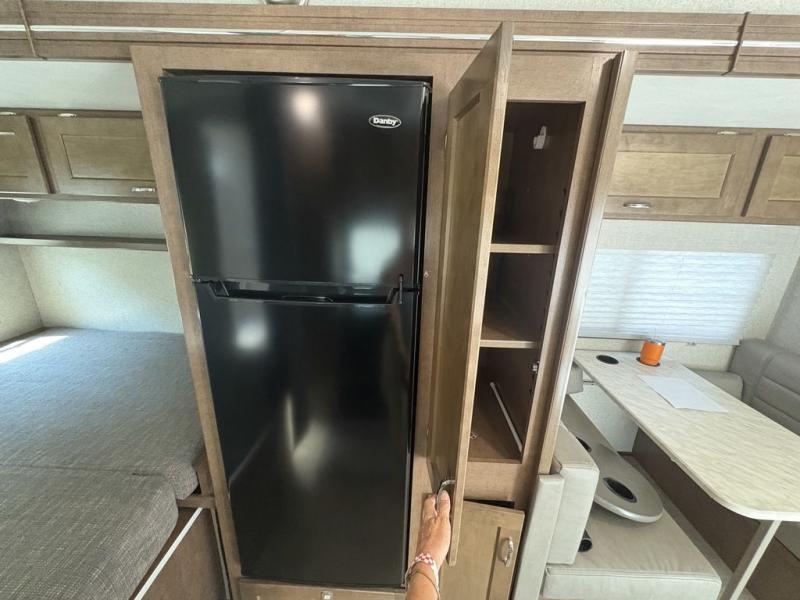 It's time to enjoy each adventure with this spacious motorhome thanks to the large slide out along one side. You will be able to easily move about to get to the rear queen bed with nightstands and the rear full bathroom. The space savings, sliding bi-fold door allows you easy access to the shower, toilet and sink. You can dine at the booth dinette or choose the theater seating option with pedestal table in its place. The two multi-use storage areas, the kitchen cabinets and the exterior storage give you even more places to stow your things. And when you want to relax you can choose the dinette or the captain's chairs. The overhead cab bed will be the kids favorite place to sleep, and you will surely appreciate having your own kitchen amenities to whip up meals.