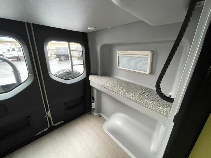 Who said you need a huge motorhome to see the country? This unit has everything you need for your next journey, and the four wheel drive allows you to go off the beaten path! Every space has been thought out in this model to maximize storage and sleeping space. The power lift bed is perfect for a good night's rest and the gear garage below can store your bikes or hiking gear. Additional sleeping space can be found on the Flex Bed system which provides a 25" x 69" bed converted from the bench seat and pull-up dinette table. This unit features an all-in-one gear closet and wet bath, so you can use it to clean up or store your hiking gear. You can plan to go off-grid since this model includes a solar panel and battery charger and the dual-pane acrylic windows with insulated shades allow you to camp in the snowy mountains if you wish and you can be sure to stay warm!