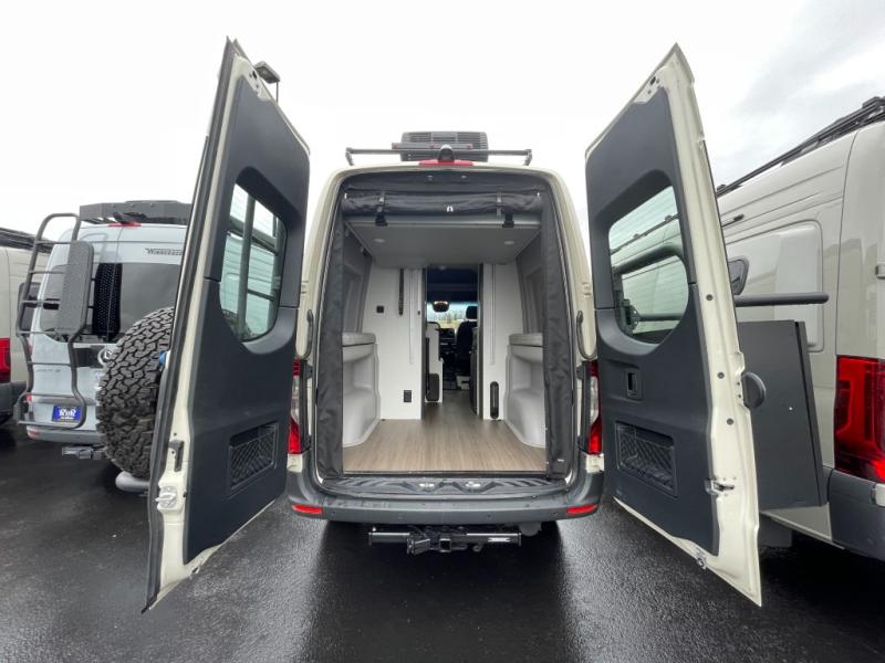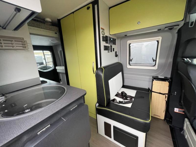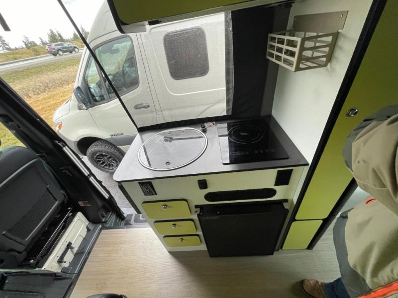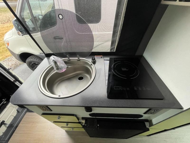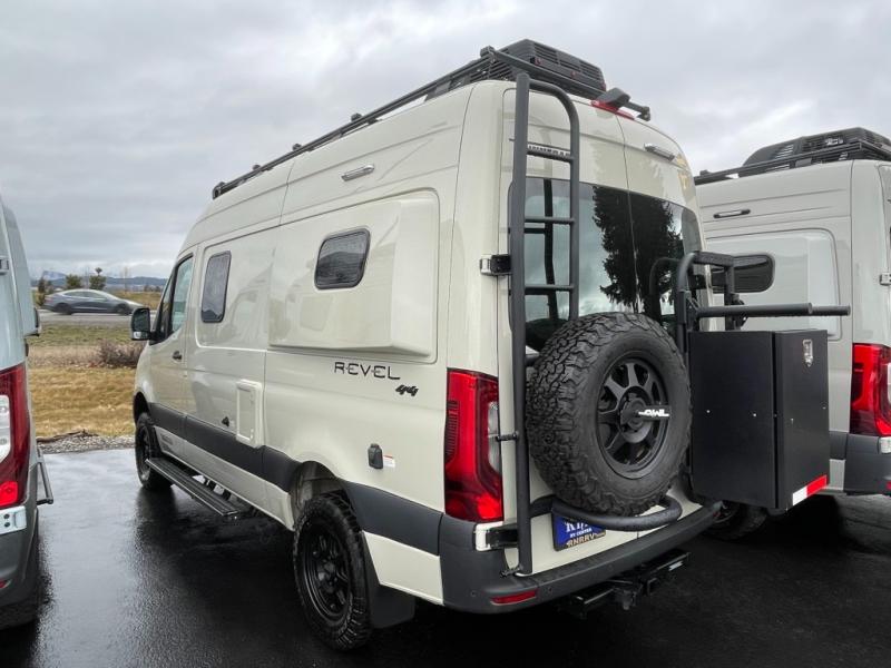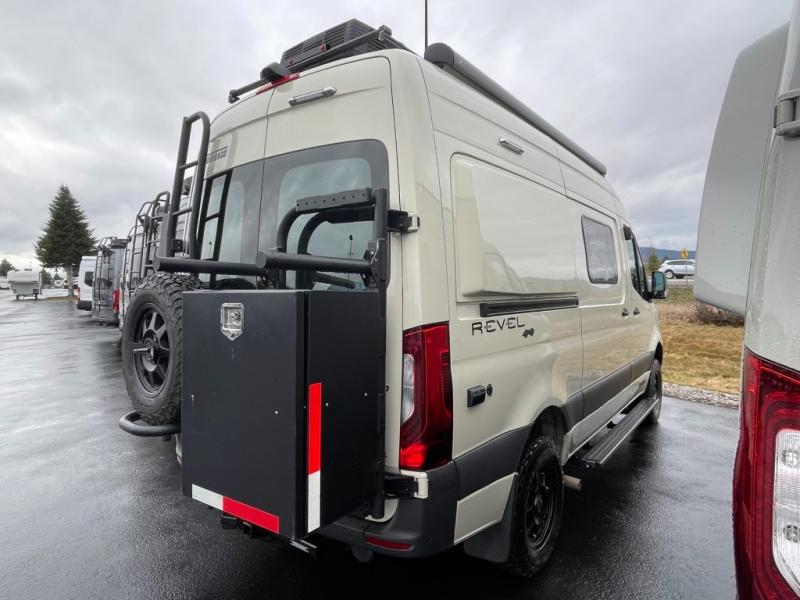 With the Revel class B diesel motorhome you will appreciate the On-Demand 4WD, 4-wheel ABS brakes, and a 3.0L 6-cylinder turbo-diesel engine, so you can travel anywhere you wish and the 200 watt solar power system allows you to go off-grid. You'll find many indoor conveniences you won't want to travel without, including a 2.5 cu. ft. compressor driven refrigerator/freezer, a single burner induction cooktop, 140 cu.ft. of under-bed storage, and two removable shelves that convert the wet bath into a storage cabinet if you choose. These units also include rear mud guards, a movable ladder, a luggage rack, and a fold-down exterior table just to name a few outdoor features!