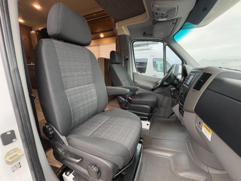 In any Winnebago Vita, you will find a motorhome in a class all its own. From the Mercedes-Benz sprinter chassis to the customizable storage cabinets. Each unit is built with an adaptive ESP technology and hydraulic brakes with ABS to help you reach your destination safely. Your driver will enjoy features like the MBUX touchscreen multimedia infotainment center, the hill start assist, and the cruise control. The cab seats have armrests, an adjustable lumbar support system, and a head rest, plus they can swivel, recline, and slide to give you a comfortable ride. While traveling, you can enjoy viewing the beautiful scenery as it goes by through the panoramic galley window or you can pull up your favorite movie on the 32" HDTV to make the time go by faster!