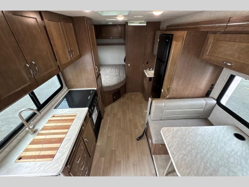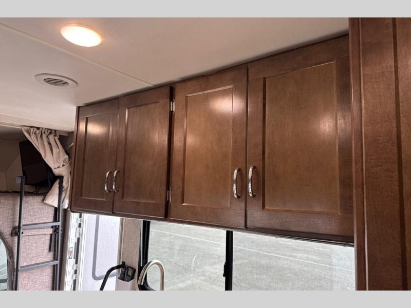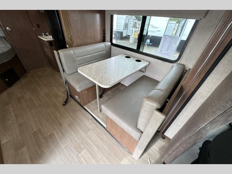 Step inside this spacious Winnebago Vita 24F and find a motorhome that will take you on a trip of a lifetime! It features a rear corner bath for added privacy, and a comfortable 50" x 80" bed for you to enjoy a good night's rest. There is also an overhead bed above the cockpit to give you another sleeping spot while still saving space throughout the unit. You will have plenty of space to store all of your items between the multi-use storage cabinets as well. Your meal times can be family time when you enjoy them at the booth dinette, and you can even transform it into an extra sleeping space too!