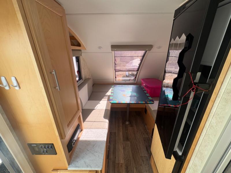For your next camping trip, you will want this Little Guy Mini MAX teardrop trailer. There is sleeping space for two in this model, and you will enjoy plenty of conveniences, such as a wet bath with a three-function sprayer and a marine-style toilet. Enjoy your meals at the U-shaped dinette that can convert into one queen-size bed or two twin-size beds. Your perishables will stay cool in the 5 cu. ft. three-way Norcold refrigerator which has double doors and a tall profile, plus it is astonishingly large for this class of RV. The four insulated dual pane windows have a darker tint for privacy and temperature control, and when you are laying in bed at night, you can enjoy a view of the stars from the optional vertical stargazer window which opens nearly 90 degrees and offers plenty of natural light during the day.