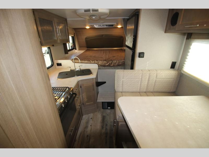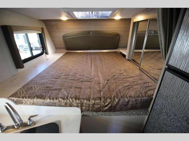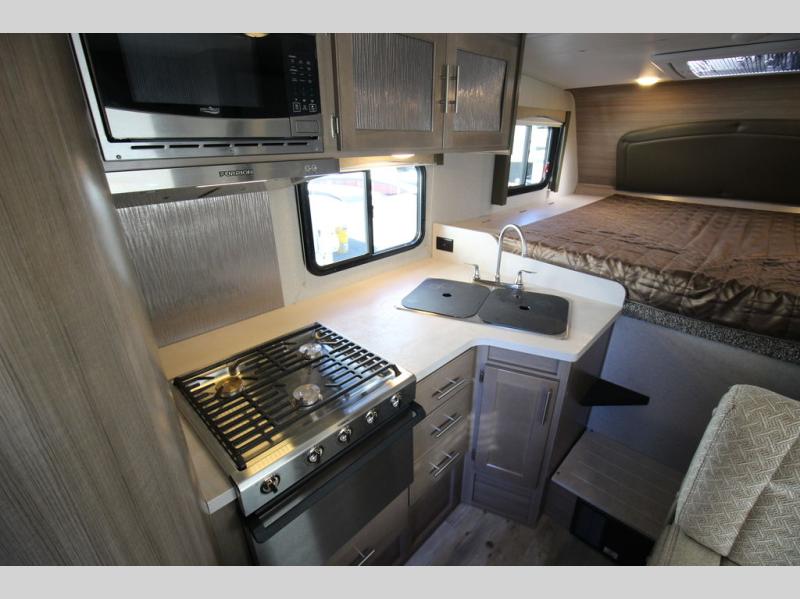 The Adventurer 89RB truck camper is 8'9" in length, with a 60x8 queen-sized bed, mirrored double door wardrove, and ample storage. The Face-to Face Dream Dinette along with the rear galley makes this 8'9" camper feel like it has the room of a slide-out. The classic style also offers the largest wet bath in the industry topped with a large, bright, and airy skylight. This comfortable and convenient model fits 6ft and larger short-bed and all long-bed trucks making the 89RB the most versatile truck camper in the industry!