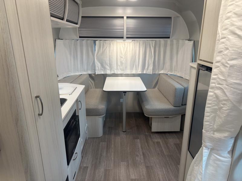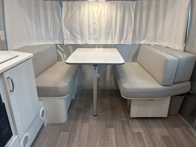 The well-executed design of the Airstream Bambi travel trailer is what makes it a desirable choice for weekend getaways! Since these trailers are lightweight and very easy to tow, you won't have to exert much energy to get them to the campsite, and even though they are small, they make an excellent use of their space by offering you everything you'll need for big adventures. With the air conditioner and furnace, you'll be able to stay at the perfect temperature no matter what the weather is like outside, and the strategically placed USB ports and 110V outlets will help you keep everything charged. The panoramic front windows with blackout shades are going to provide you with amazing views, and the Performatex stain-resistant fabric on the dinette will withstand years of use.