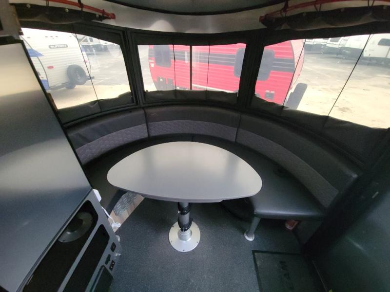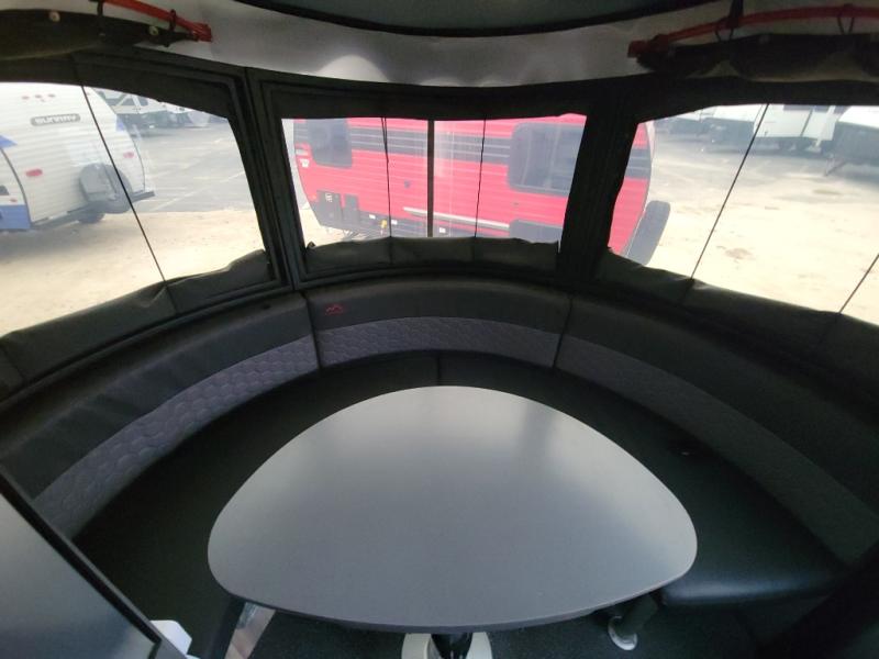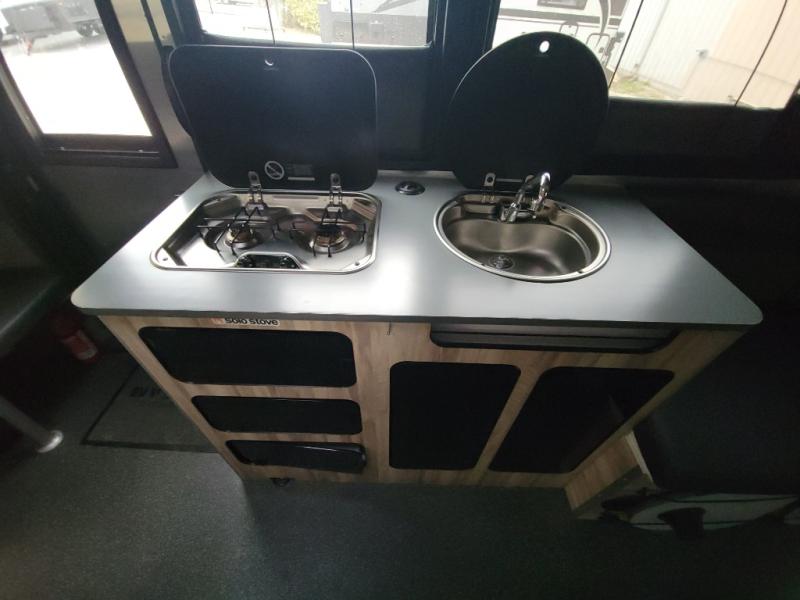 You will fall in love with this Basecamp travel trailer that can sleep four people each night. The bench seating in the back can convert into a half bed on one side, a full bed that spans that back of the unit, or split seating and sleeping space for whatever arrangement you are needing. You can clean up each day in the convenient wet bath and prepare all your meals on the two-burner stove. This model also includes a front convertible dinette that easily transforms into a 43" x 78" sleeping or lounging space so that you can read a book on those rainy days.
