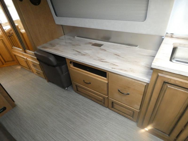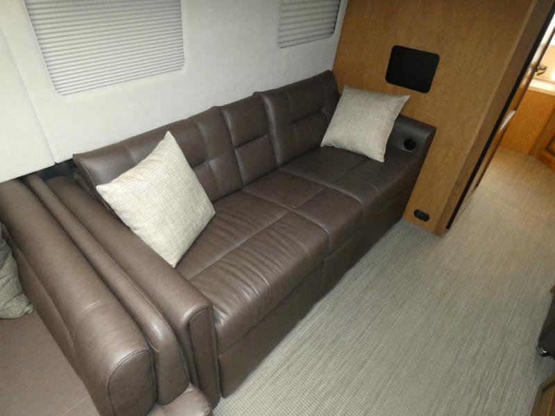 You absolutely will not be disappointed when you choose to get away for an extended vacation or full-time living with this Classic travel trailer! Surrounded by high-end kitchen features, a stunning bathroom, and a comfortable bedroom oasis with a power queen bed, you will always feel right at home. This unit also gives you the most pleasant morning experience because of the front panoramic windows that engulf the bedroom and allow you to wake up with the sun, or if you prefer to keep the blackout curtains closed throughout the night, you can sleep in for as long as you like without being disturbed by the bright light.