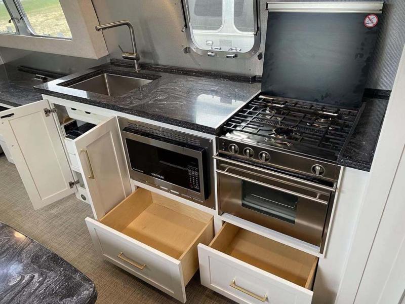 The Airstream Classic travel trailer is both timeless and memorable for good cause! The Classic is the epitome of comfort, elegance, and sophistication, and it provides you with many essential amenities that will make your road trips feel like a destination getaway. The Quietstream climate control easily and quickly cools the interior with practically no noise, and a little touch like the doorbell is what will aid these trailers in feeling like home. The power awning is sure to be one of the features you use the most as you sit outside, and the rear-view monitoring system makes backing up quite easy. The Classic also comes with a 270W solar package with interior monitor, solar front window protection, an Airstream connected Wi-Fi service, Airstream Smart Control with app, and a safe for your valuables.