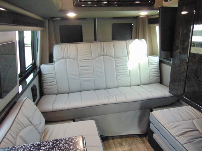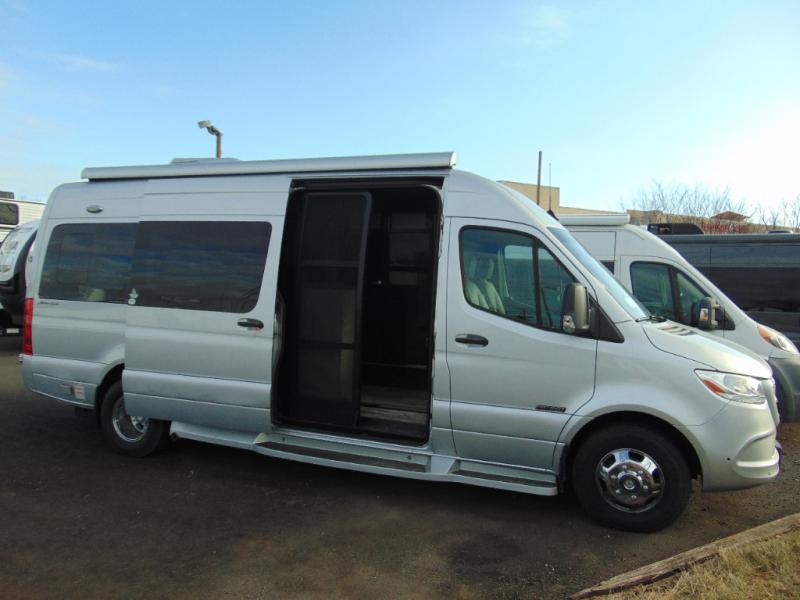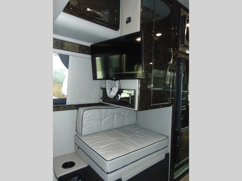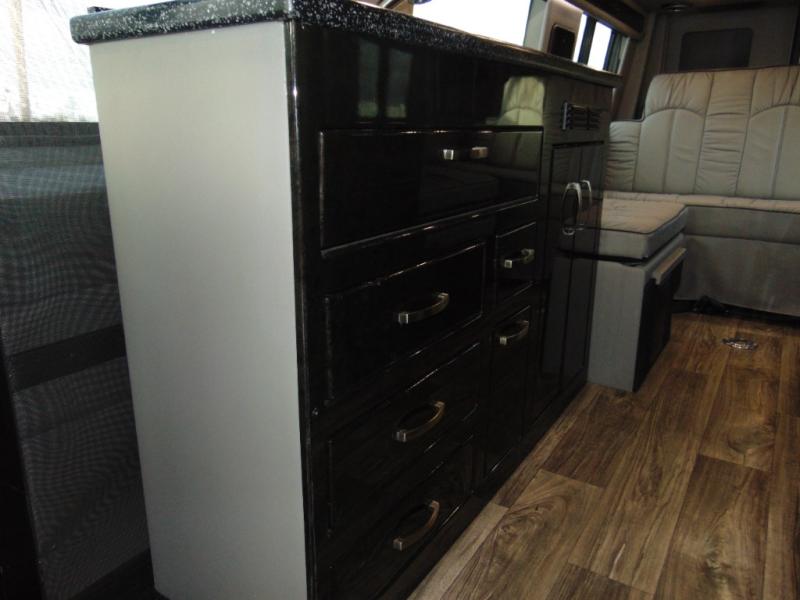You can ride on custom seating while looking out the windows, swivel the driver and passenger seats to face the rear power folding sofa, and enjoy everywhere you decide to stop in this American Patriot Class B diesel. The chef of the family can prepare meals on the induction cooktop or use the stainless steel microwave, and the leftovers can go in the 12V refrigerator and the rolls back in the pantry. The wet bath is convenient with its shower curtain and power bath vent to keep everything fresh. You can enjoy the evening outdoors under the power awning with LED light or watch a show indoors on the LED HDTV.