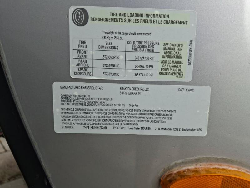 Used 2021 Braxton Creek Bushwacker 10SS Travel Trailer