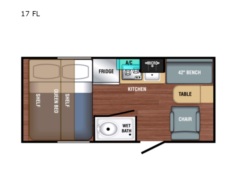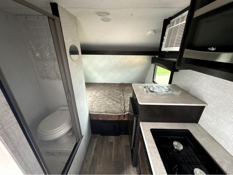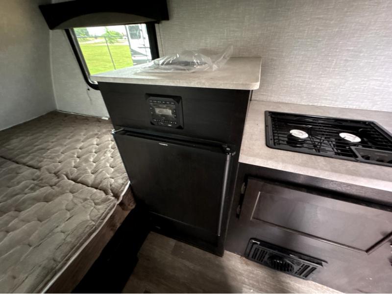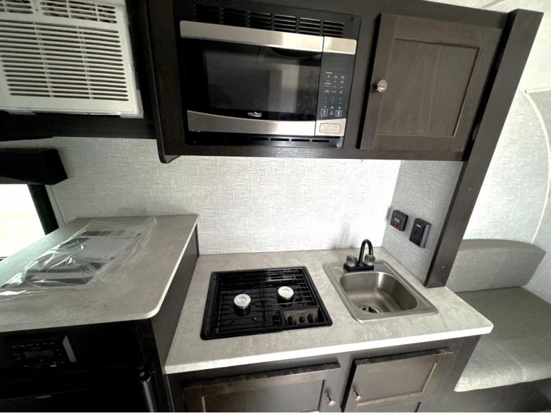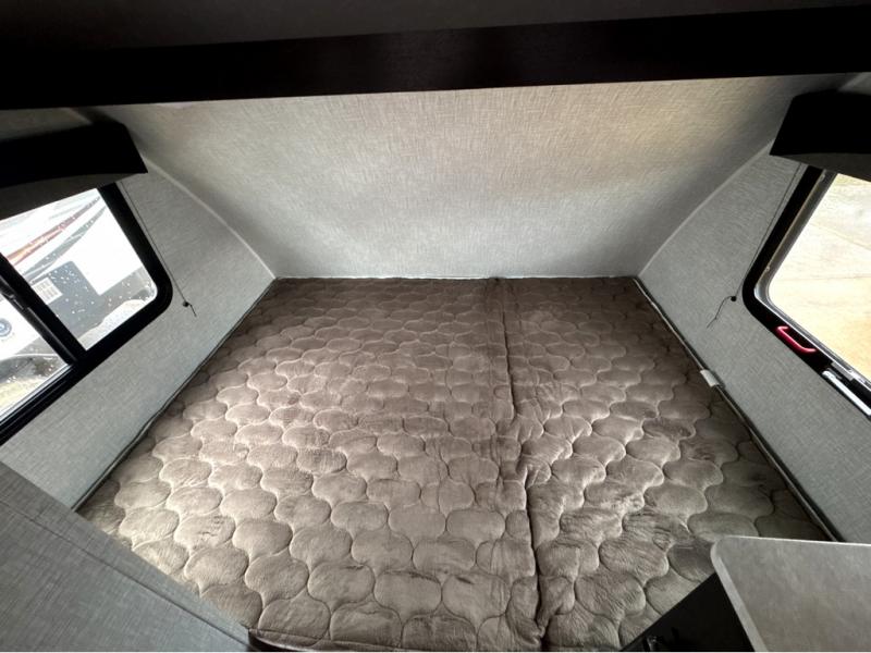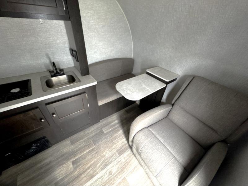 It will be such a cinch to get to the campsite when you have this Bushwacker Plus teardrop trailer in tow! Not only will you find it easy to tow this model, but you will also find it easy to enjoy with all of the features it provides, like a kitchen area with a two-burner cooktop, an expanded wet bath with integrated shower/toilet enclosure, a Bluetooth-ready stereo with speakers, and a Go-Power Solar Prep package. You can even sit down with your significant other inside of this trailer to enjoy a cup of coffee on the lounge chair and bench seating up front, and the flip-down table in between will make it possible for you to play a game of cards while you relax.