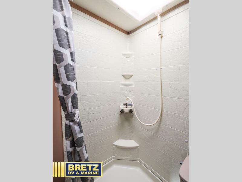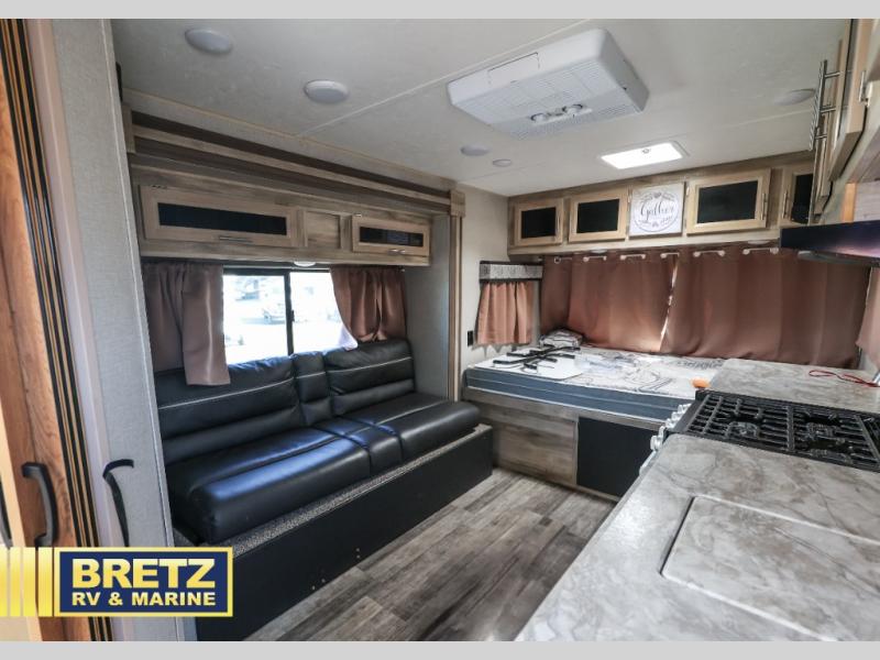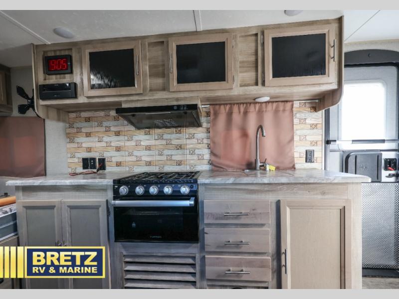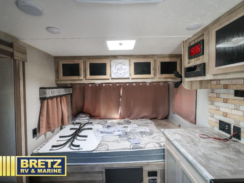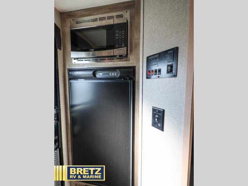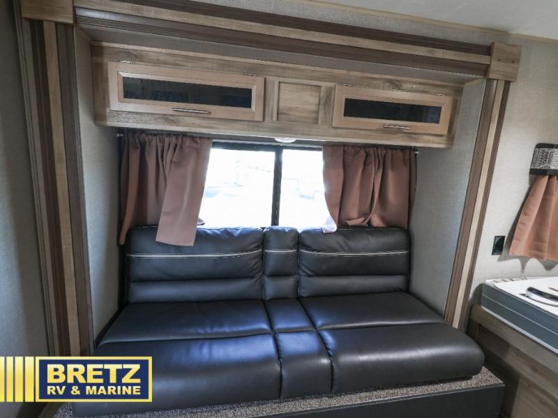 You and your spouse will love camping near and far in this Catalina Expedition travel trailer that has a single slide providing a little more interior space to walk around, stretch your legs, and dine. This area is also great for an overnight guest or two small children to sleep on. Spend your days outside swimming at the lake or hiking trails to return to the full bath with a radius shower that will allow you to get cleaned up before bed. You will find an RV queen bed with a countertop at the foot of the bed for your book or phone, and you'll have a great view of the 32" 12V DC TV for a late-night show. No wonder this unit was voted "Best of Show" for 2020 by RV Pro!