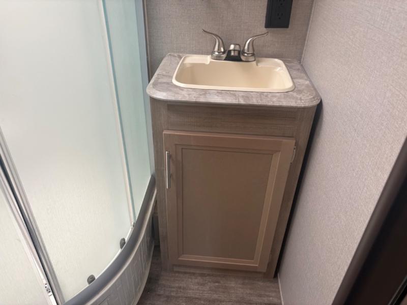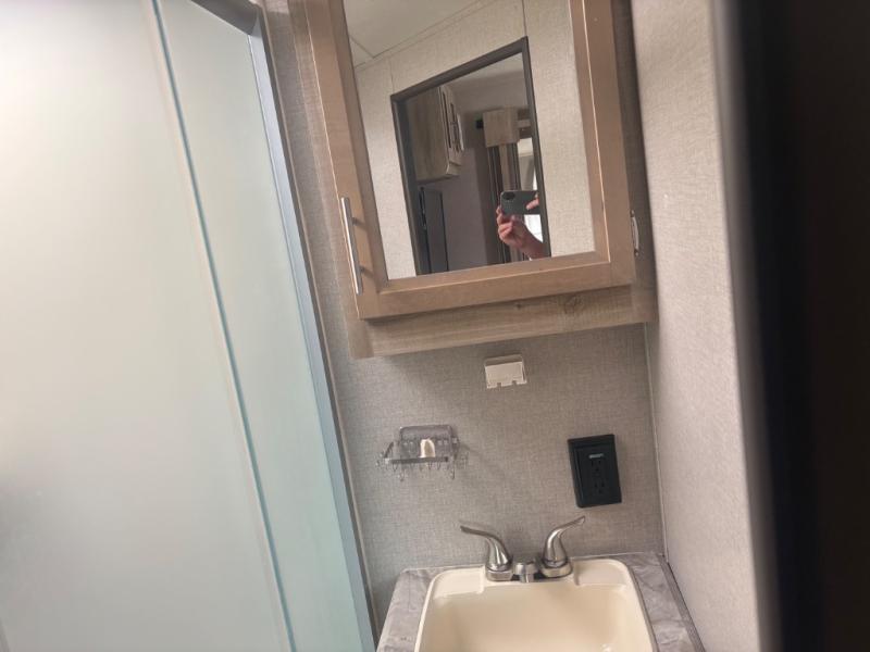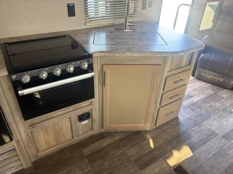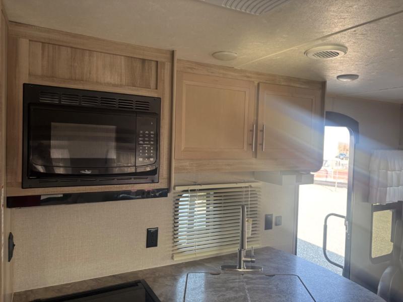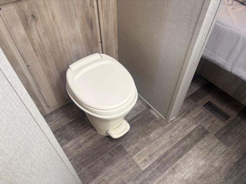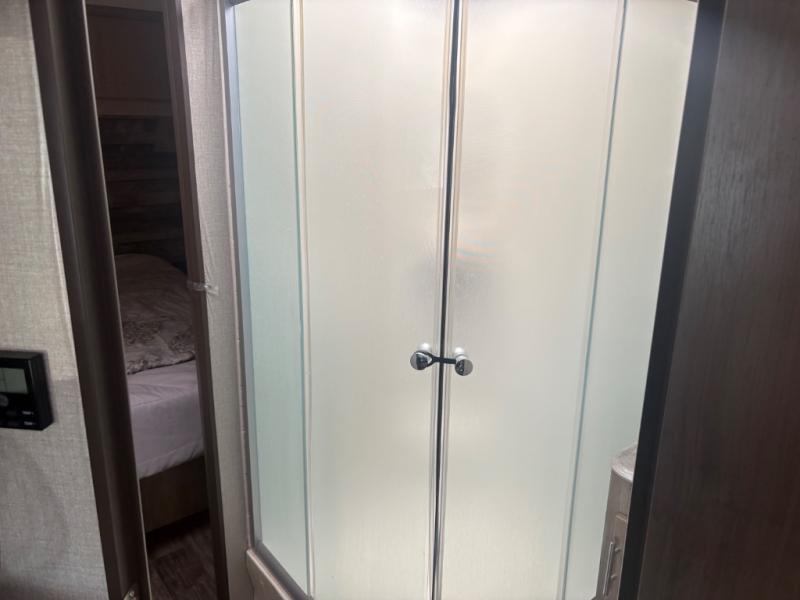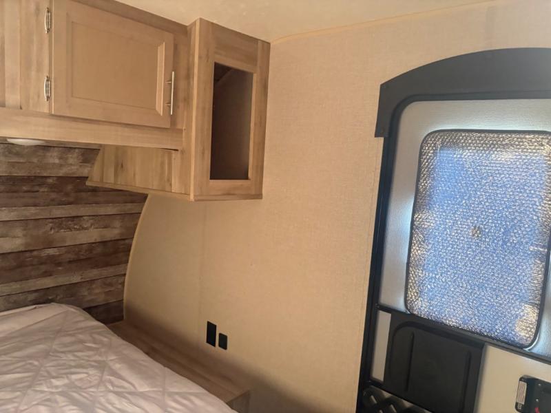Whether you are couple that enjoys relaxation or a family that seeks adventure, this trailer will sleep at least four when you utilize the sofa and booth dinette. You and your spouse will have their own walk-around queen bed to sleep in privacy as well as have access to the outside with your own exterior entry. When you are outside grab your camping chairs from the pass-through compartment and relax under the electric awning. When you are hungry, the cook can make warm meals with full amenities inside and the 10 cu. ft. refrigerator will hold the beverages and leftovers. There are many more features that will make you want this one, step inside!