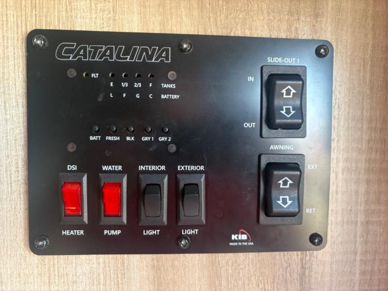 The Catalina Legacy Edition travel trailers by Coachmen RV are constructed with a cambered structural steel l-beam frame, a seamless Alpha roof membrane, full length frame E-coated outriggers, fiberglass insulation throughout, and an enclosed, fully sealed underbelly for four seasons of traveling. Along the exterior you will find a flip-down Cargo rack with 200 lb. capacity, a power awning with multi-color LED lighting and a remote, two JBL Elite speakers, a battery disconnect switch on the A frame and an LP quick connect port. The interior offers seamless Thermofoil countertops throughout, an under-mount farm style sink, a slim line range hood, and Congoleum Woodplank linoleum flooring for style and durability. Choose your favorite today and enjoy comfort and style where ever you decide to camp!