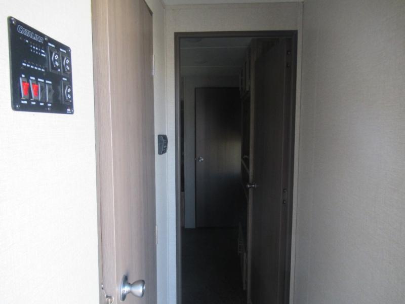 The Catalina Legacy Edition travel trailers by Coachmen RV are constructed with a cambered structural steel l-beam frame, a seamless Alpha roof membrane, full length frame E-coated outriggers, fiberglass insulation throughout, and an enclosed, fully sealed underbelly for four seasons of traveling. Along the exterior you will find a flip-down Cargo rack with 200 lb. capacity, a power awning with multi-color LED lighting and a remote, two JBL Elite speakers, a battery disconnect switch on the A frame and an LP quick connect port. The interior offers seamless Thermofoil countertops throughout, an under-mount farm style sink, a slim line range hood, and Congoleum Woodplank linoleum flooring for style and durability. Choose your favorite today and enjoy comfort and style where ever you decide to camp!