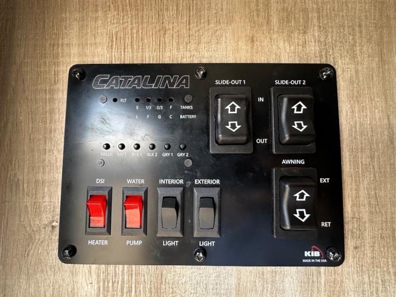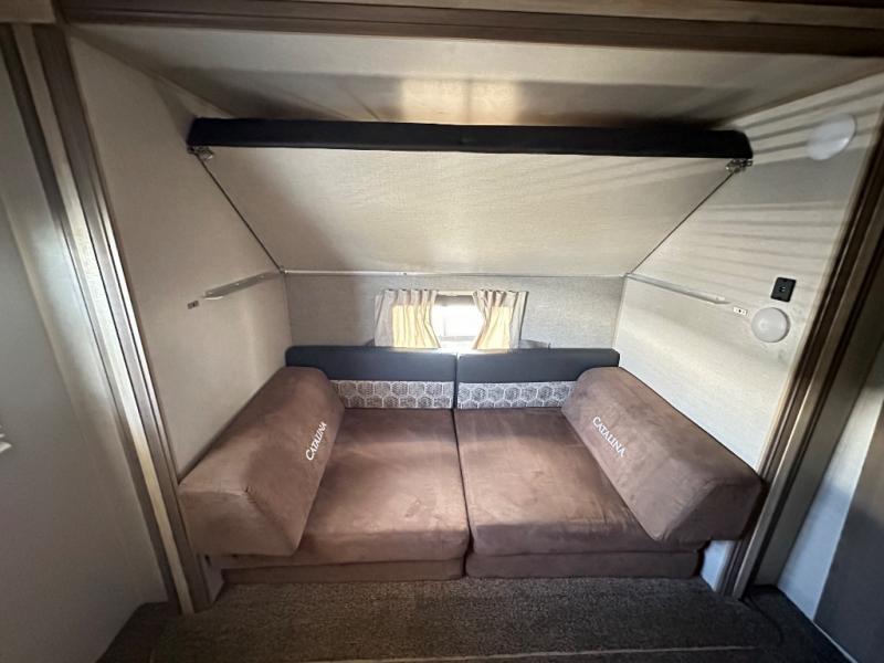 The Catalina Legacy Edition travel trailers by Coachmen RV are constructed with a cambered structural steel l-beam frame, a seamless Alpha roof membrane, full length frame E-coated outriggers, fiberglass insulation throughout, and an enclosed, fully sealed underbelly for four seasons of traveling. Along the exterior you will find a flip-down Cargo rack with 200 lb. capacity, a power awning with multi-color LED lighting and a remote, two JBL Elite speakers, a battery disconnect switch on the A frame and an LP quick connect port. The interior offers seamless Thermofoil countertops throughout, an under-mount farm style sink, a slim line range hood, and Congoleum Woodplank linoleum flooring for style and durability. Choose your favorite today and enjoy comfort and style where ever you decide to camp!
