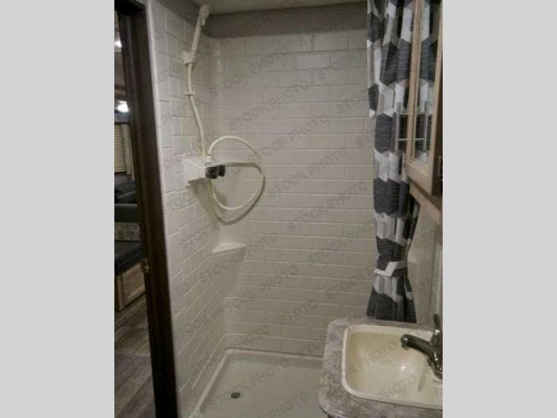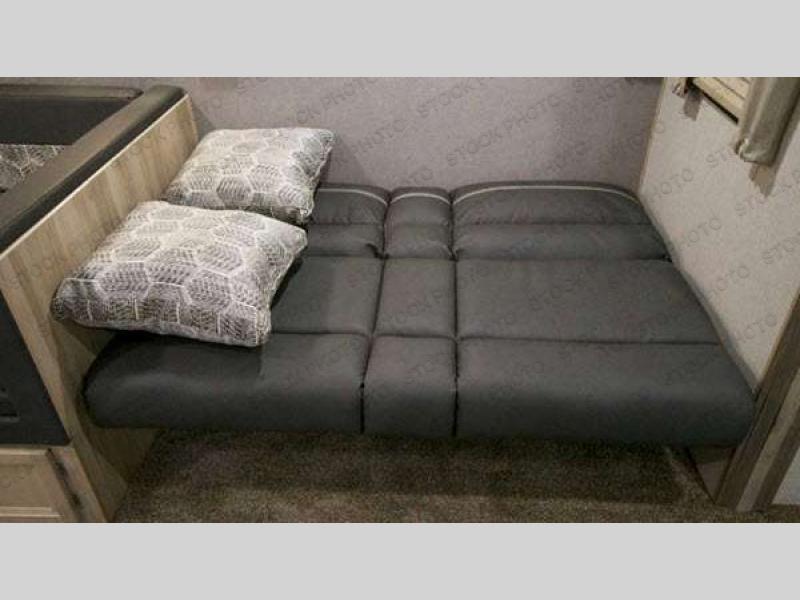A larger family will love all the space in this trailer with a slide out in the bunkhouse and a second slide out in the main living area! The kids will claim their own bunk bed or COA cube futon to sleep on at night and they will find storage fro their things in the wardrobes and cabinets. You will have dual wardrobes in the private bedroom on the opposite side, and your own walk-around queen bed. The outside full-size camper kitchen might be one of your favorite features or maybe its the 21' electric awning with the choice of LED lighting color to keep the party going into the night. On the chilly evenings, hang out inside at the U-shaped dinette or sofa and watch the 39" LED TV with dual zone entertainment sound bar and optional fireplace. And the inside kitchen has full amenities.