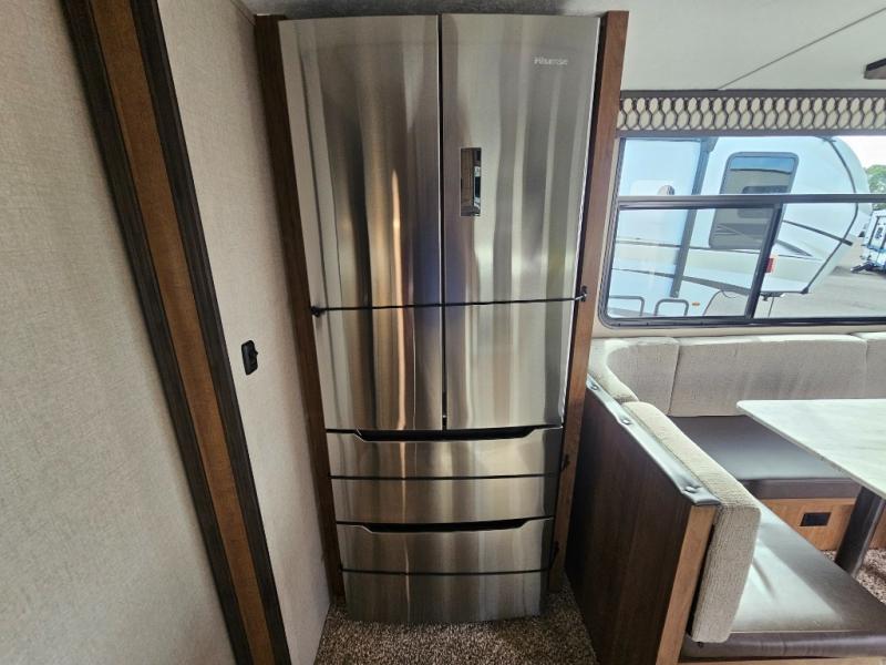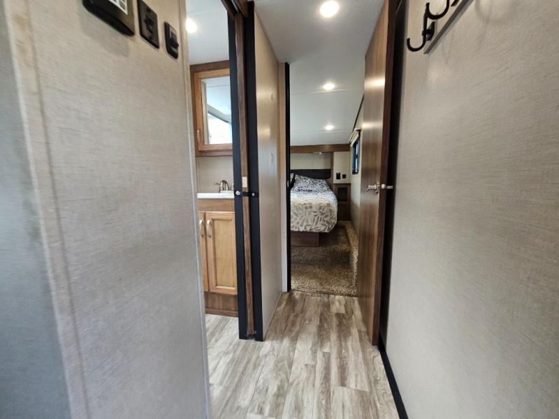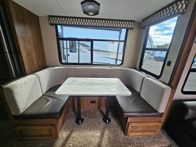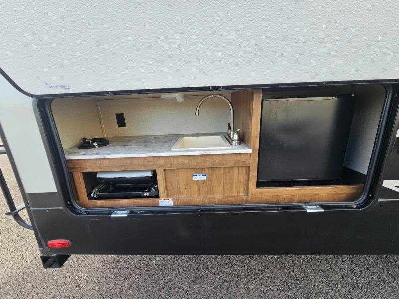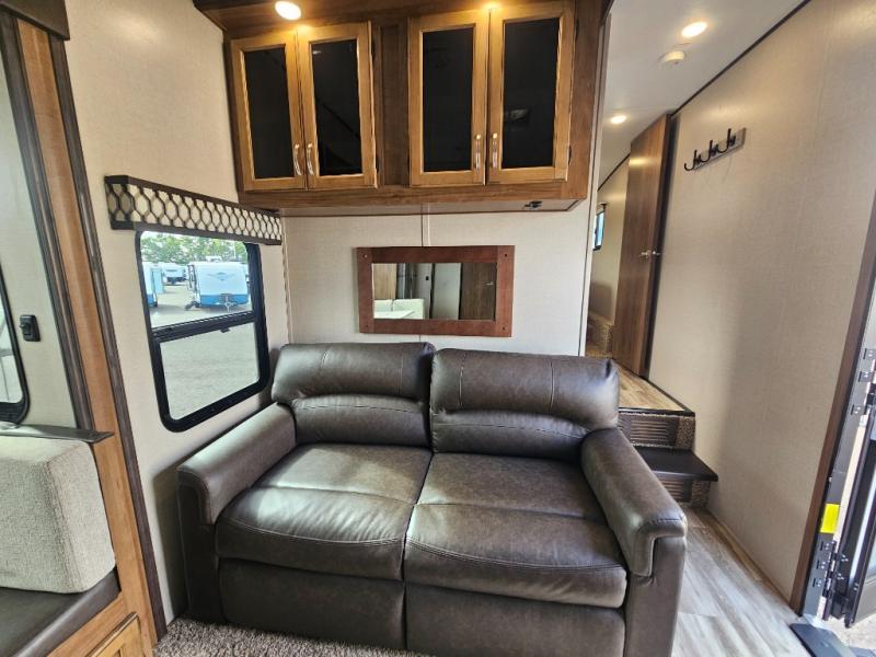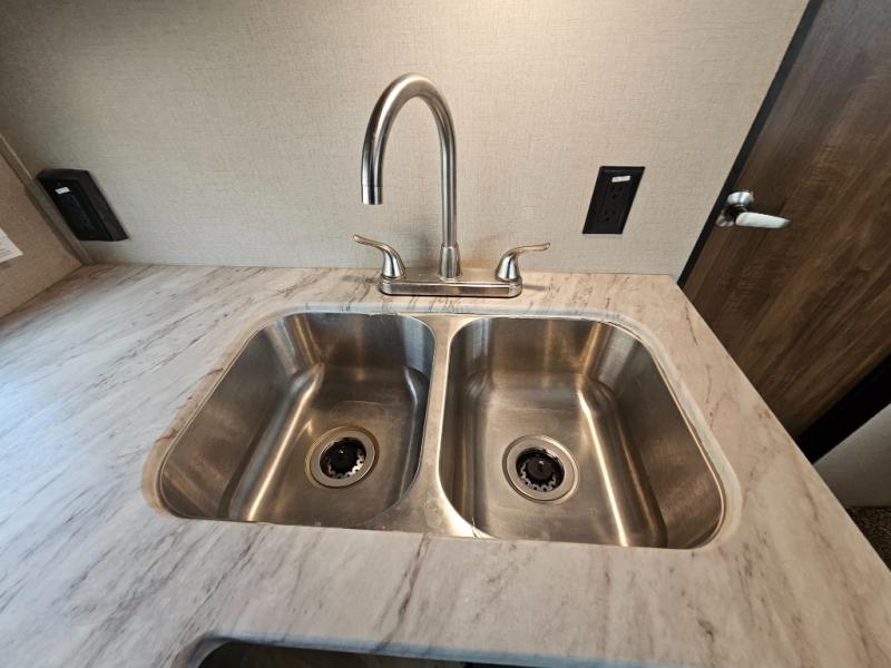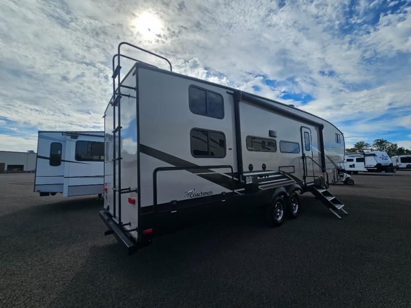 The Chaparral Lite fifth wheels by Coachmen allow you to enjoy the RV lifestyle without all the hassle! These models feature Road Armor Suspension by Trail Air with heavy duty shackles and wet bolts, plus Turn Tech Engineering for easy towability. The Weather Shield+ technology features heated and enclosed gate valves, plus an unobstructed and insulated pass-through storage with built-in tool storage so you don't have to leave anything behind. Step inside to find coordinating Dove Grey decorative slide out fascia, an extra deep farm style sink with matching thermofoil sink covers, and a pillow top mattress for all-around comfort. You will appreciate dual USB ports in the bedroom, an AM/FM/CD/DVD player with Bluetooth, pus a high BTU output modern electric fireplace for a more at-home feel.