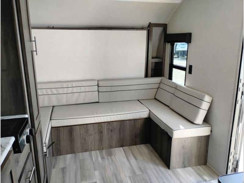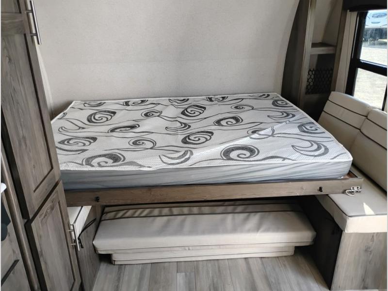 Pack your bags and load up this Clipper Ultra-Lite travel trailer! You will experience versatile living with a front Murphy bed located behind the U-shaped dinette, and it can be pulled down after you have enjoyed your dinner and played a few card games at the dinette. There is also a set of bunk beds in the back of this trailer. The kitchen has a three-burner cooktop for you to prepare your delicious home-cooked meals and plenty of pantry space to store your favorite snacks. The rear corner bathroom has a shower to freshen up in each morning and an open linen closet to keep your towels, plus the vanity is just outside of the bathroom for your convenience!