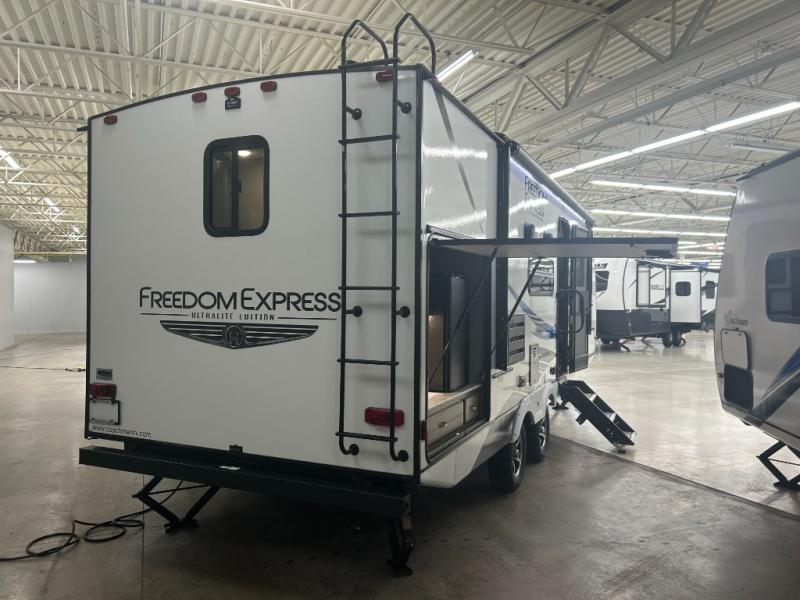 You will thoroughly enjoy the freedom that comes with the Coachmen Freedom Express Ultra Lite travel trailer! Whether it's a quick trip to your favorite backwoods campsite or a longer excursion to uncharted territory, you'll find everything that you need to camp successfully with the Freedom Express Ultra Lite. There is a Tufflex PVC roofing, a front diamond plate, E-Z lube axles, and a pet leash/bottle opener. These trailers have been prepped for a back-up camera, and they are ready for solar power. The TV and radio antenna has also been prepped for Wi-Fi and 4G, and the exterior shower is going to come in handy when you need to rinse off your outdoor toys.