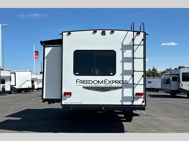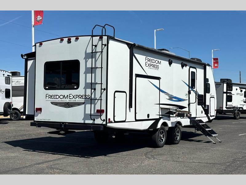 You will thoroughly enjoy the freedom that comes with the Coachmen Freedom Express Ultra Lite travel trailer! Whether it's a quick trip to your favorite backwoods campsite or a longer excursion to uncharted territory, you'll find everything that you need to camp successfully with the Freedom Express Ultra Lite. There is a Tufflex PVC roofing, a front diamond plate, E-Z lube axles, and a pet leash/bottle opener. These trailers have been prepped for a back-up camera, and they are ready for solar power. The TV and radio antenna has also been prepped for Wi-Fi and 4G, and the exterior shower is going to come in handy when you need to rinse off your outdoor toys.