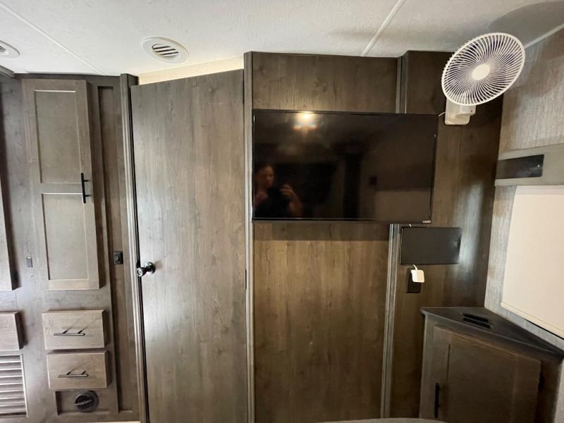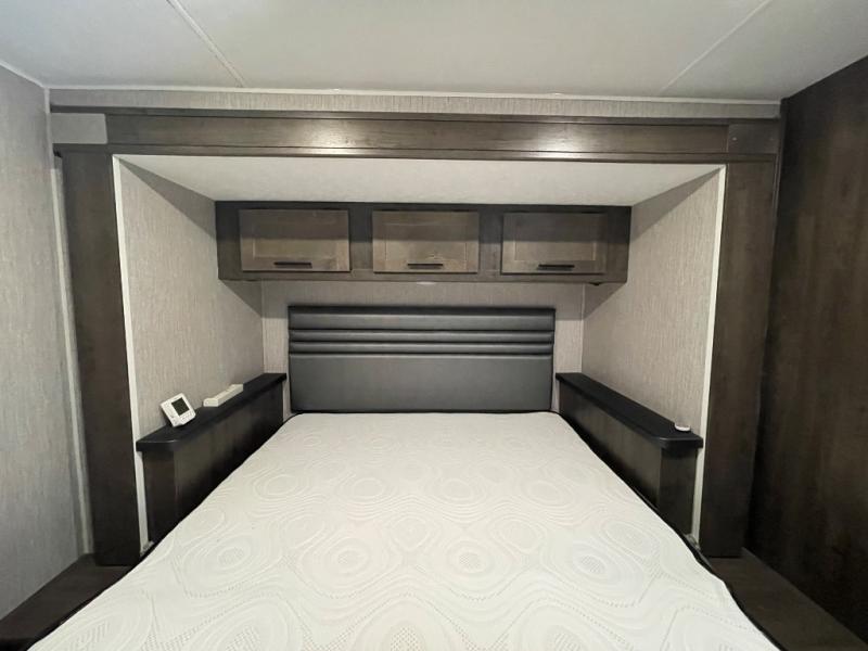 You need to check out this Leprechaun model! It has two slides which really opens up the interior space so that you won't feel claustrophobic especially when you have to be inside on a rainy day. This unit is great for a family of seven or eight if you have kids traveling with you, not only for sleeping but also for storage space as well. If you would like to be outdoors without the sun beating down on you, then open up the 18' power awning and enjoy some shade. Plus, if you choose to add the optional outdoor kitchen table then everyone can gather around together outside too.