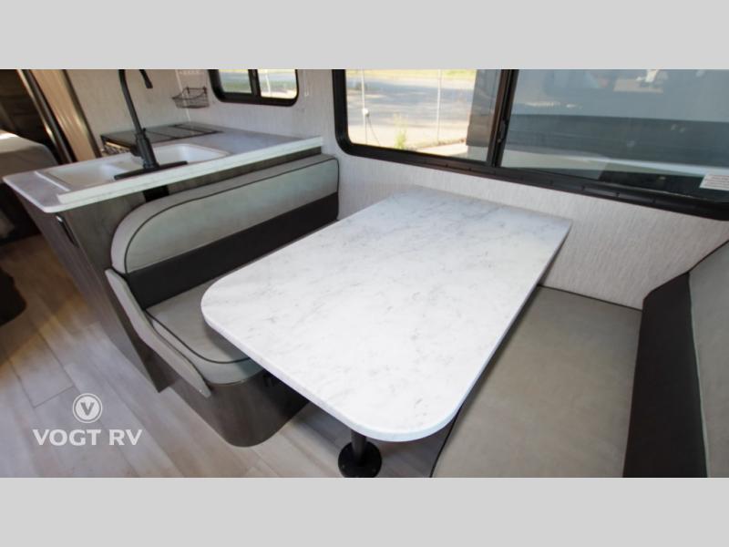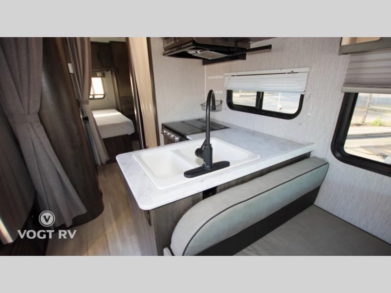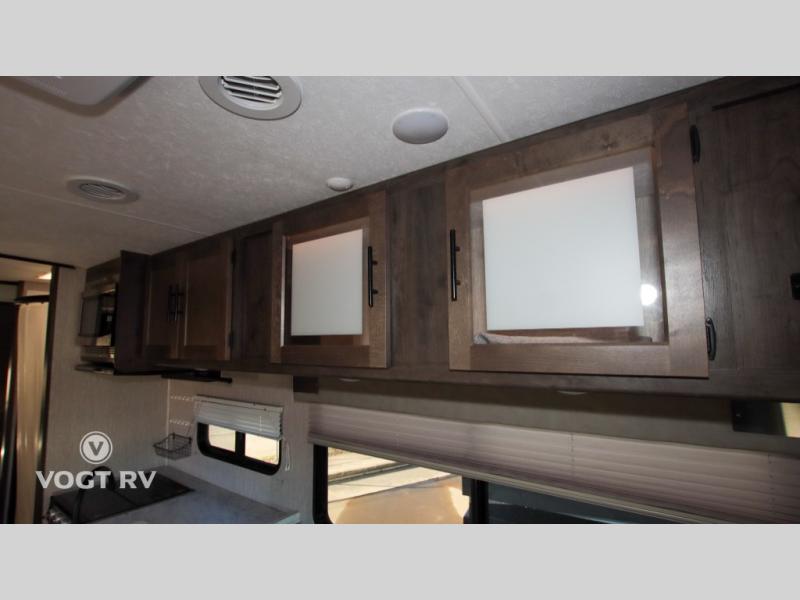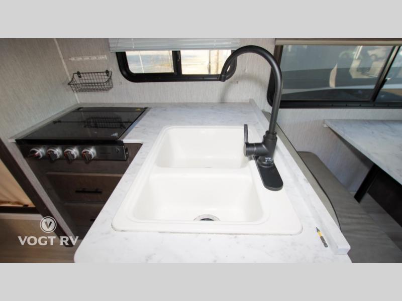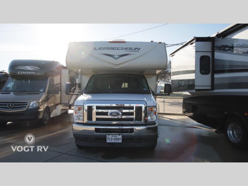 With each Leprechaun Class C gas motorhome by Coachmen you will enjoy "better" interior appointments, like the premium hardwood cabinet doors and drawer fronts, the one-piece thermofoil countertops, and the premium vinyl flooring. You will sleep soundly each night on the upgraded mattress, and staying clean will be easy with the premium showerhead and faucet in the bath. These models include reclining captain's seats, cruise control, and a rear backup camera so you can easily get in and out of the campground. The Leprechaun is constructed with Azdel composite sidewalls, CrossFlex PVC, polyester reinforced roof material, and vacu-bond laminated walls, roof, and floor for a durable motorhome made to last.